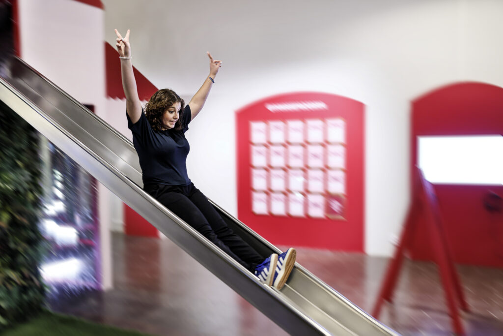 ”Det känns fantastiskt att få skapa en inspirerande och rolig miljö där unga får verktyg att navigera sina framtidsdrömmar utan prestationskrav. Gymnasievalet kan vara stressigt nog.” Christine Mars, museipedagog på Arbetets museum