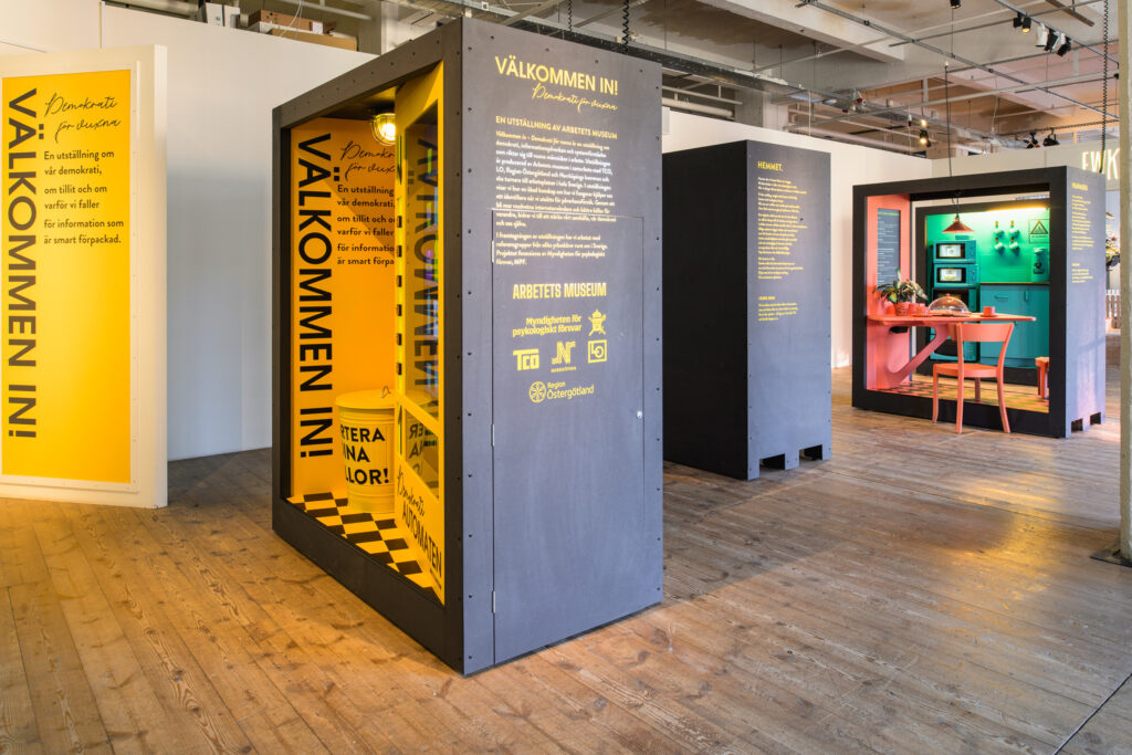 Arbetets museum har satt fokus på demokratifrågor sedan starten 1991. Vandringsutställningen Välkommen in – Demokrati för vuxna är en del av en större satsning som Arbetets museum gör kring demokrati och källkritik. I arbetet sätter vi fokus på att öka vår tillit till samhället, vår systemförståelse och människors kunskap att identifiera vinklade narrativ för att själva kunna förstå när vi blir utsatta för påverkansförsök. Med våra båda vandringsutställningar vill vi stärka tilliten till vårt samhälle och öka kunskapen om våra demokratiska principer. På lång sikt är målsättningen att skapa ett permanent Arbetets museums Demokratilabb på museet.