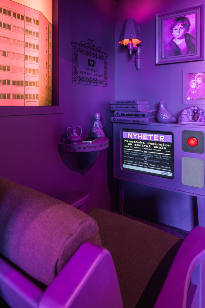 Välkommen in! – Demokrati för vuxna är en utställning som riktar sig till människor i och utanför arbetslivet. Här kliver du rakt in i den verklighet vuxna befinner sig i. På en arbetsplats och i ett hem får du ta del av hur våra invanda beteendemönster påverkar oss när vi tar in och delar information. När vi utsätts för påverkansförsök blir vi ofta triggade. Med ökad kunskap om hur vi fungerar, kan vi bli mer medvetna internetanvändare och bättre källor för varandra. Allt för att minska risken för att falla för desinformation och vinklade budskap, och därmed stärka vårt samhälle och vår demokrati. Demokrati för vuxna är en utställning som kräver 25 kvm och möjlighet till el.