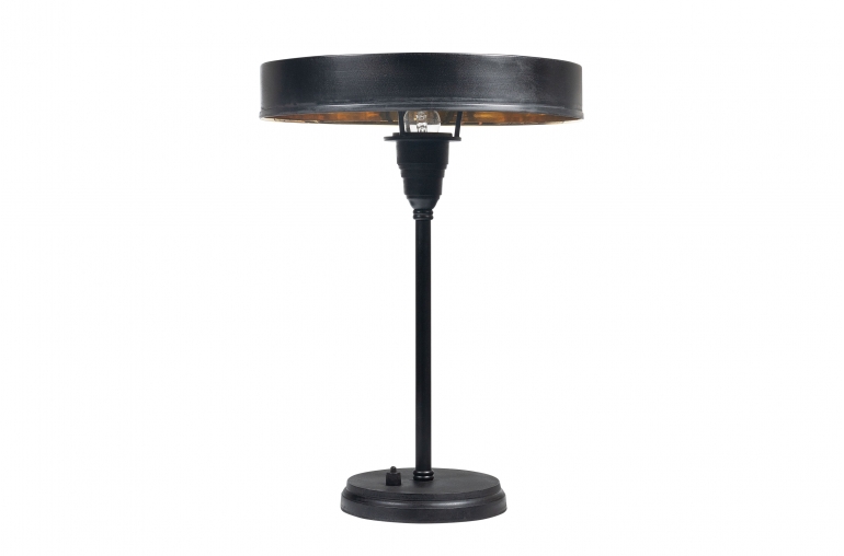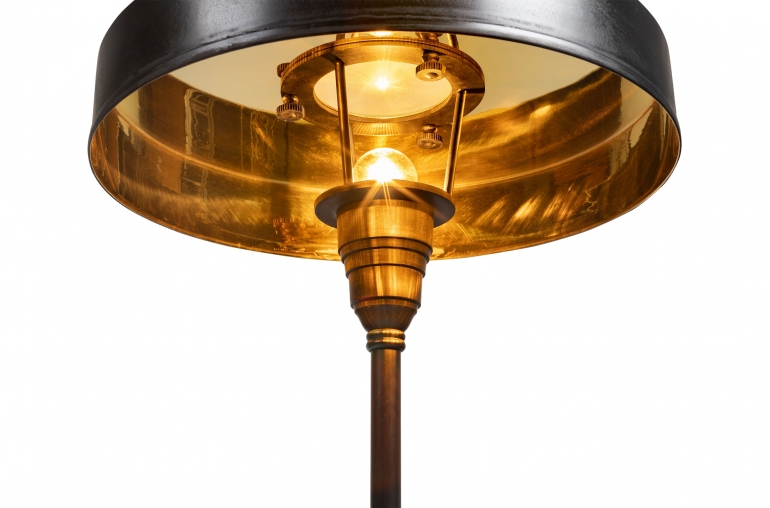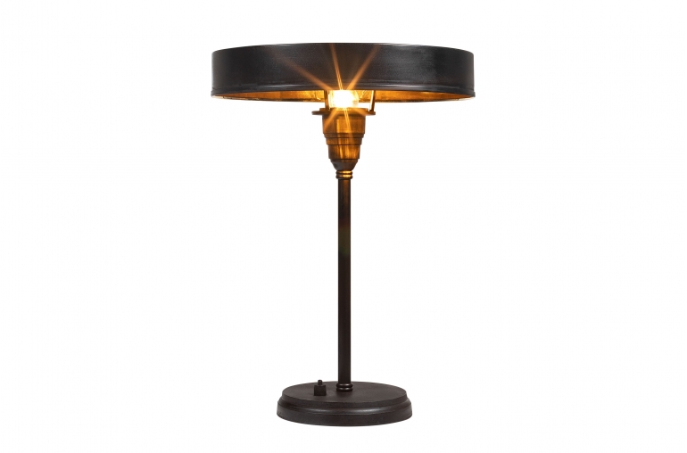 Klassisk bordslampa i antiksvart mässing. Insidan på skärmen är i rå mässing vilket skapar ett mjukt behagligt ljus. Lampan passar lika bra i ett fönster som på ett sidebord.