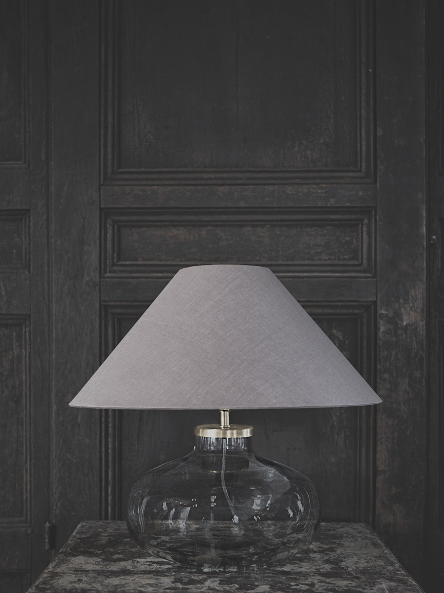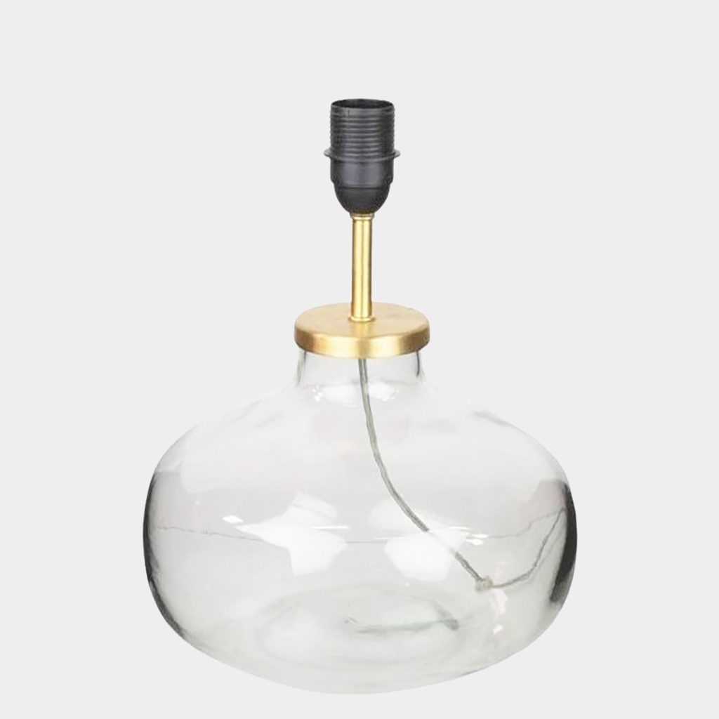 Stilren lampfot i klarglas. En lampfot som är fin med olika typer av lampskärmar från enkel klassisk linneskärm till någon mer rustik lampskärm. Maila oss för mer förslag.
