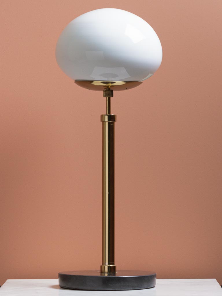 En klassisk bordslampa med det lilla extra. Bottenplattan av marmor och skärmen i keramik, vilket skapar ett väldigt mjukt och behagligt ljus.