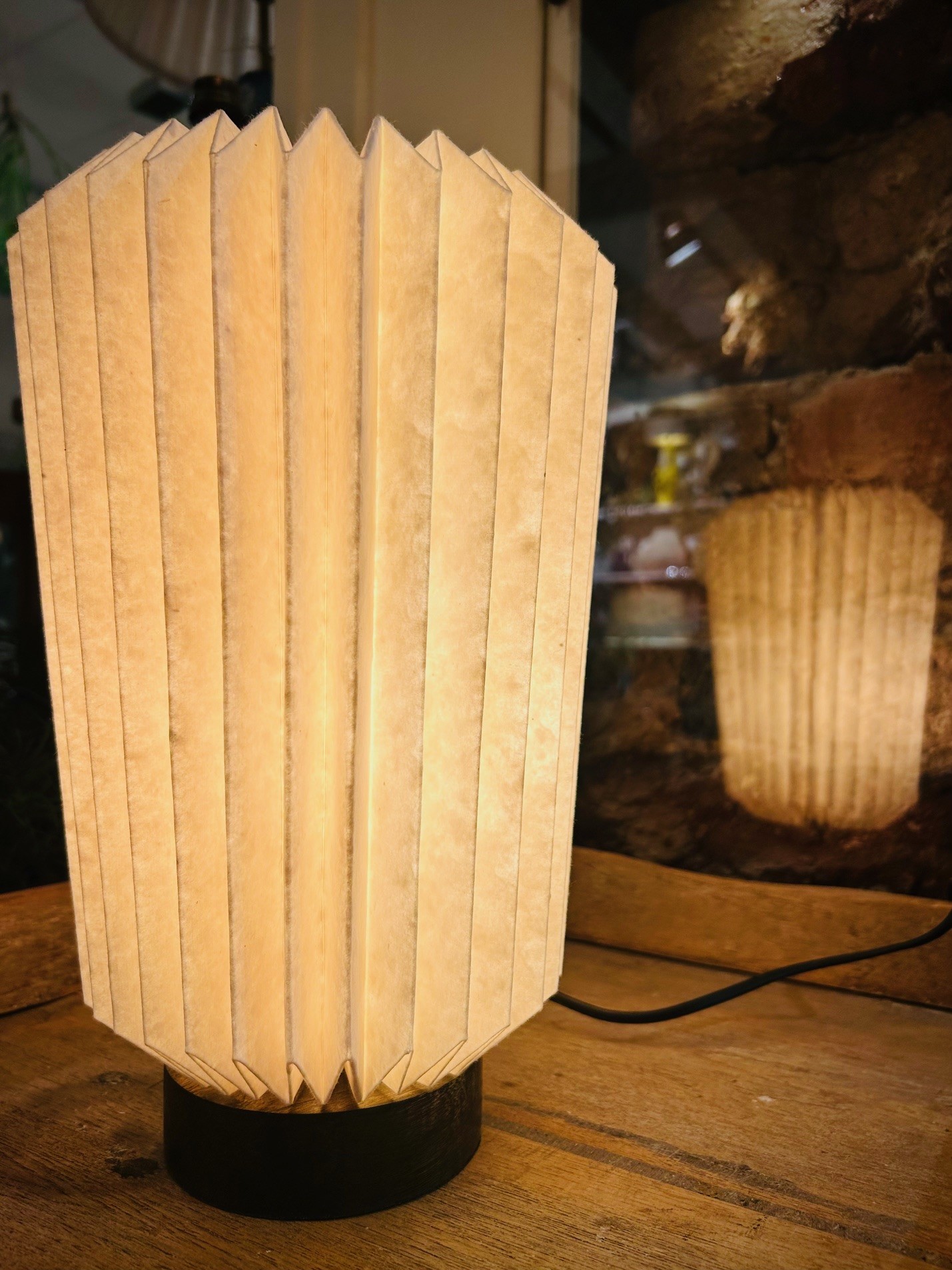 Filippa är tillverkad av handgjort papper, vilket ger en mjuk och vacker glöd som låter papprets karaktär komma fram. Handgjort papper kan variera något i uttryck, såsom tjocklek och nyans, vilket ger produkten dess unika utseende. Det är en bordslampa som kan placeras i ett fönster, på en byrå eller på ett litet bord. Perfekt för att skapa en mysig atmosfär i alla rum.
