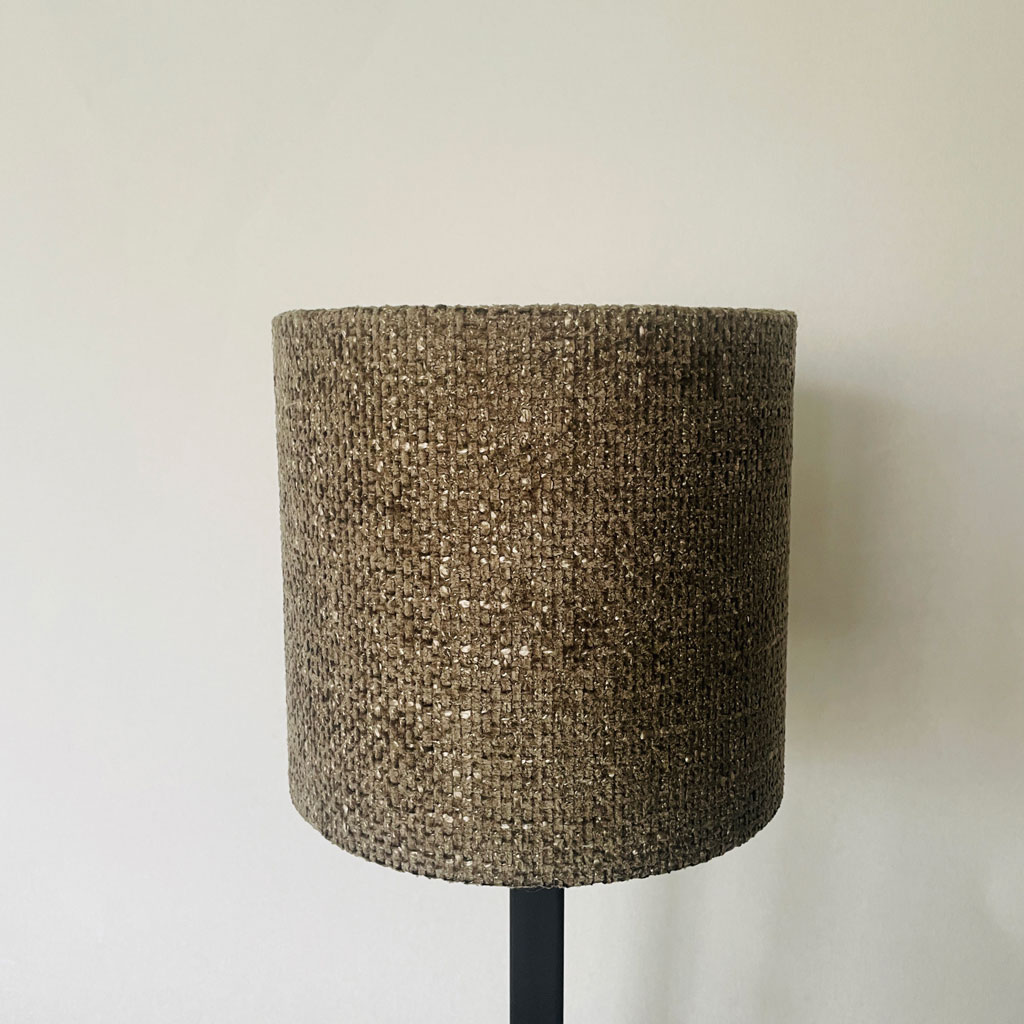 Nätt cylinderformad lampskärm i grovt tyg, vilket ger ett tuffare uttryck och skapar en tydligare karaktär till hela lampan då detta är en skärm som passar på smala så kallade pinn lampfötter.