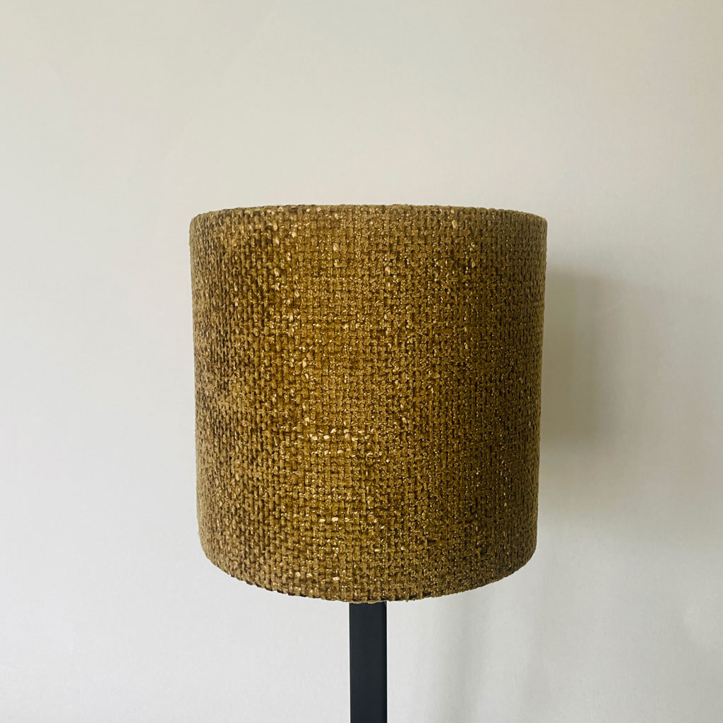 Nätt cylinderformad lampskärm i grovt tyg, vilket ger ett tuffare uttryck och skapar en tydligare karaktär till hela lampan då detta är en skärm som passar på smala så kallade pinn lampfötter.