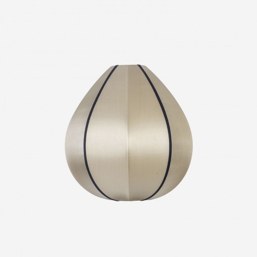 Lampskärm i kitfärgat siden med svarta bomullsband. 36×37 cm.
