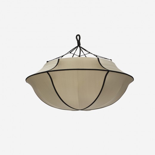 Umbrella är en vacker taklampa i siden i beige nyans med svarta bomullsband vilket ger en stilren och karaktärsfull lampa.