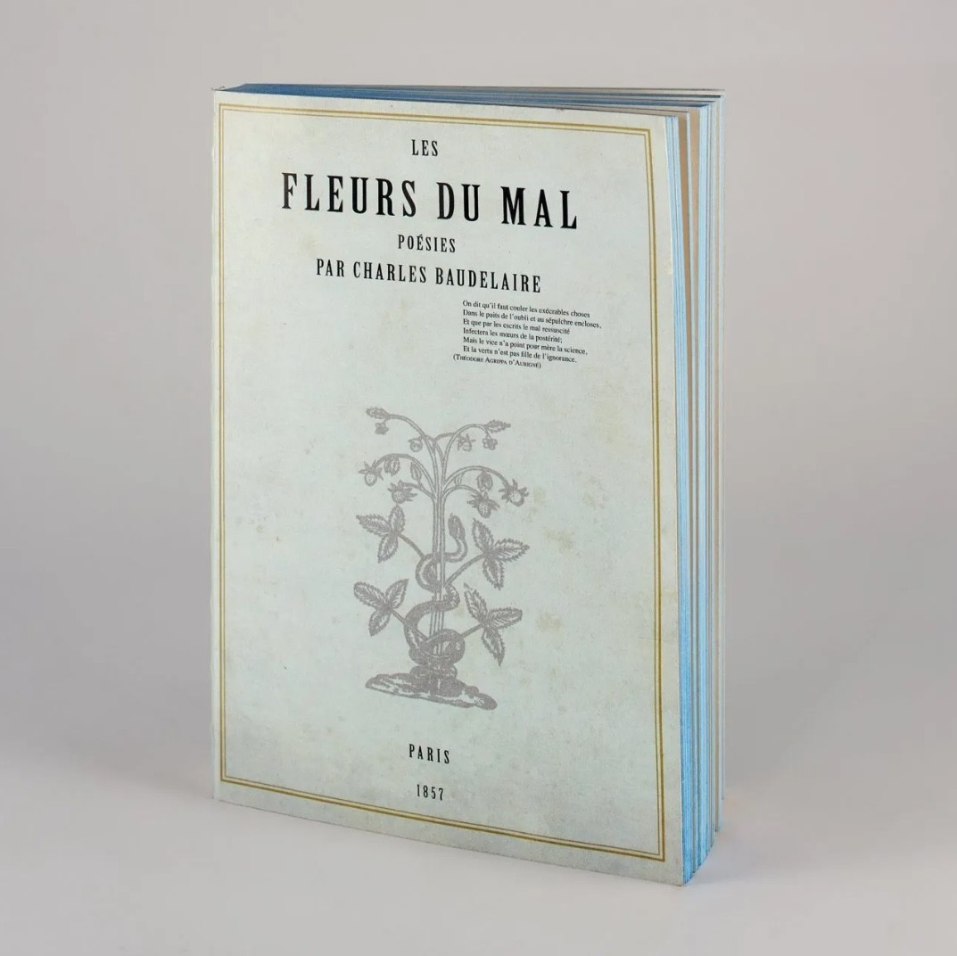Omslag: Les fleurs du mal – Baudelaire – handfärgad skiva i blått.