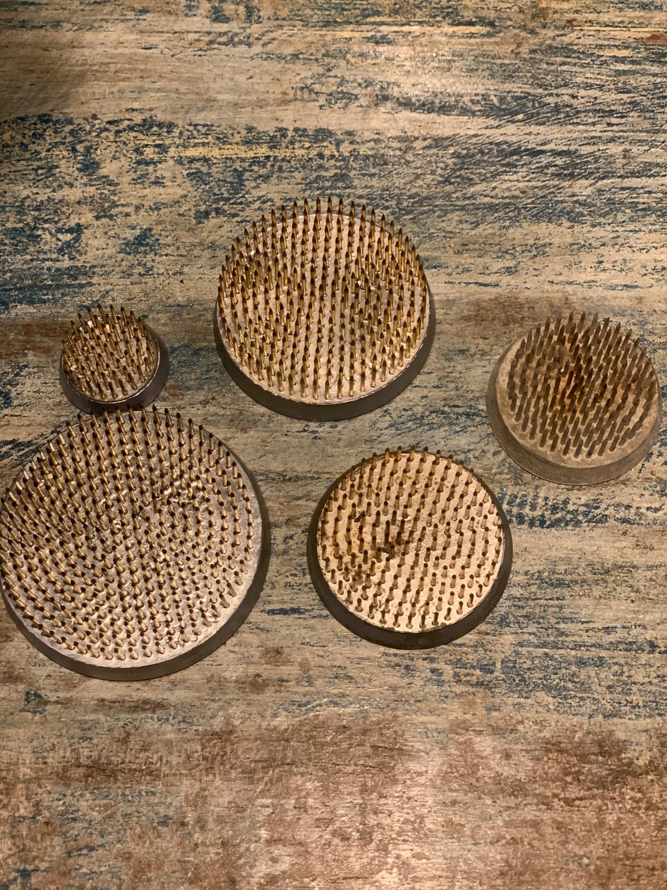 Handgjord fakir av högsta kvalitet. Bottenplattan är av tung metall vilket gör den stadig. Nålarna är många och helt av koppar vilket inte rostar. Den åldras dock på ett vackert vis och håller år efter år.