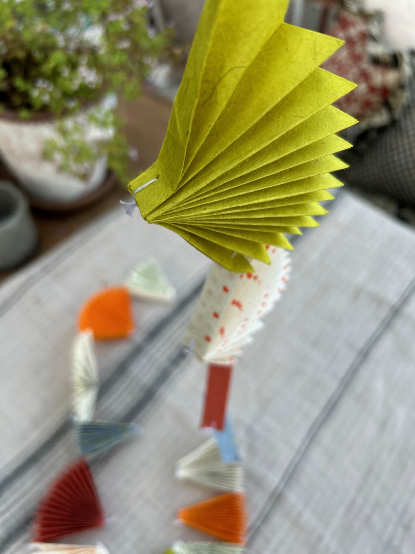 Dekorativ girlang i vikt papper i olika mönster o färger från A World of Craft Studio. Girlander är fin att hänga i fönster, över det dukade bordet eller som en liggande bordsdekoration.