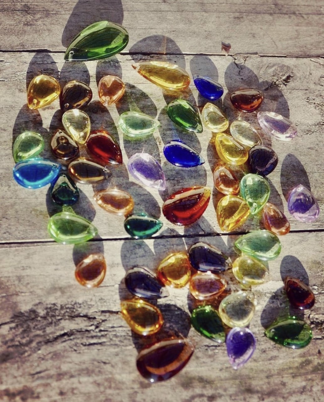 Underbara glasdroppar från Indigo & Friends i massivt glas, handgjorda och magiskt vackra. Droppen är av genomfärgat glas och lämplig att använda i trädgård, på balkong och uteplats samt inomhus i trollhassel, kvistar, påskris etc. Möjligheterna är många.