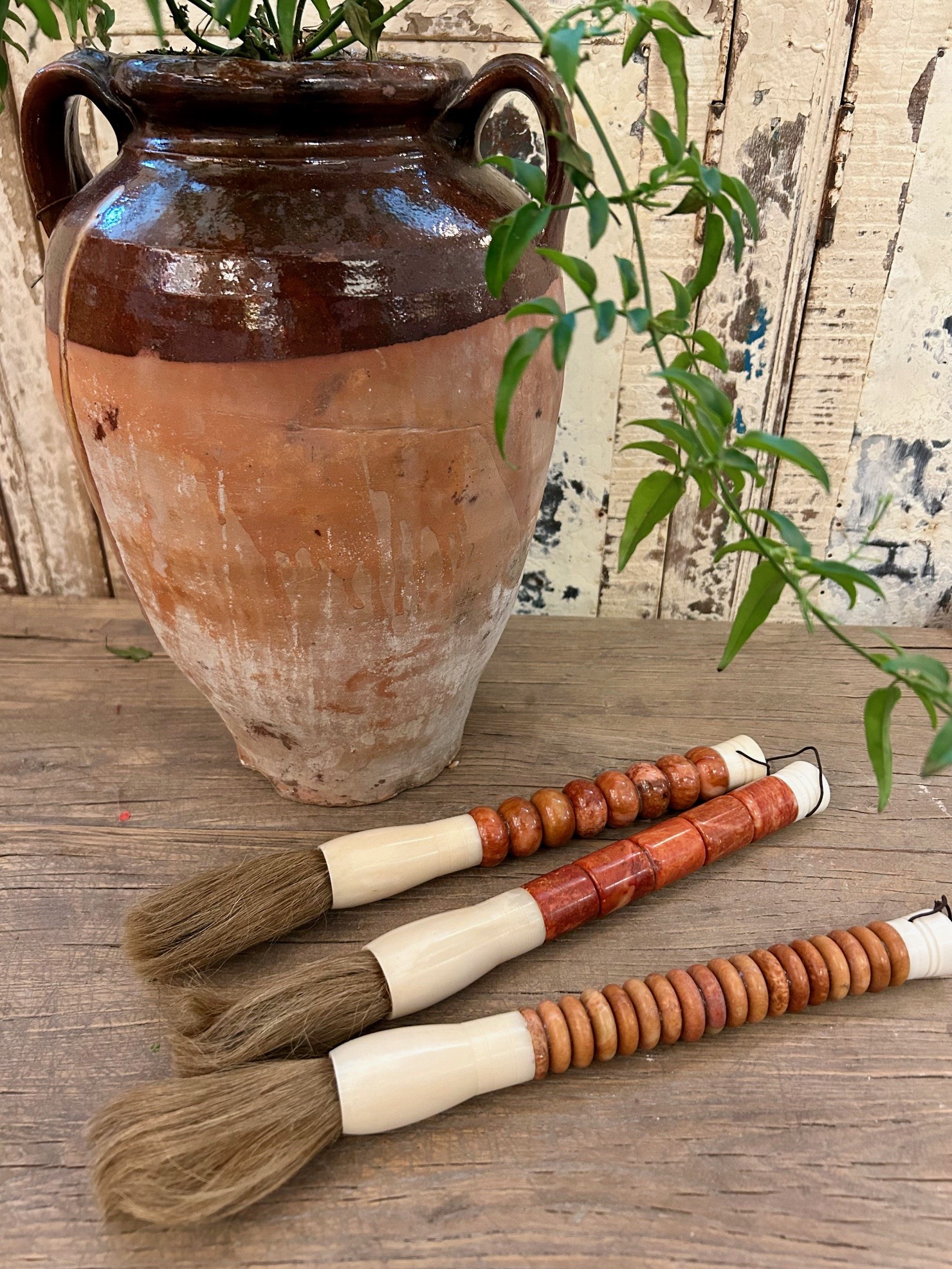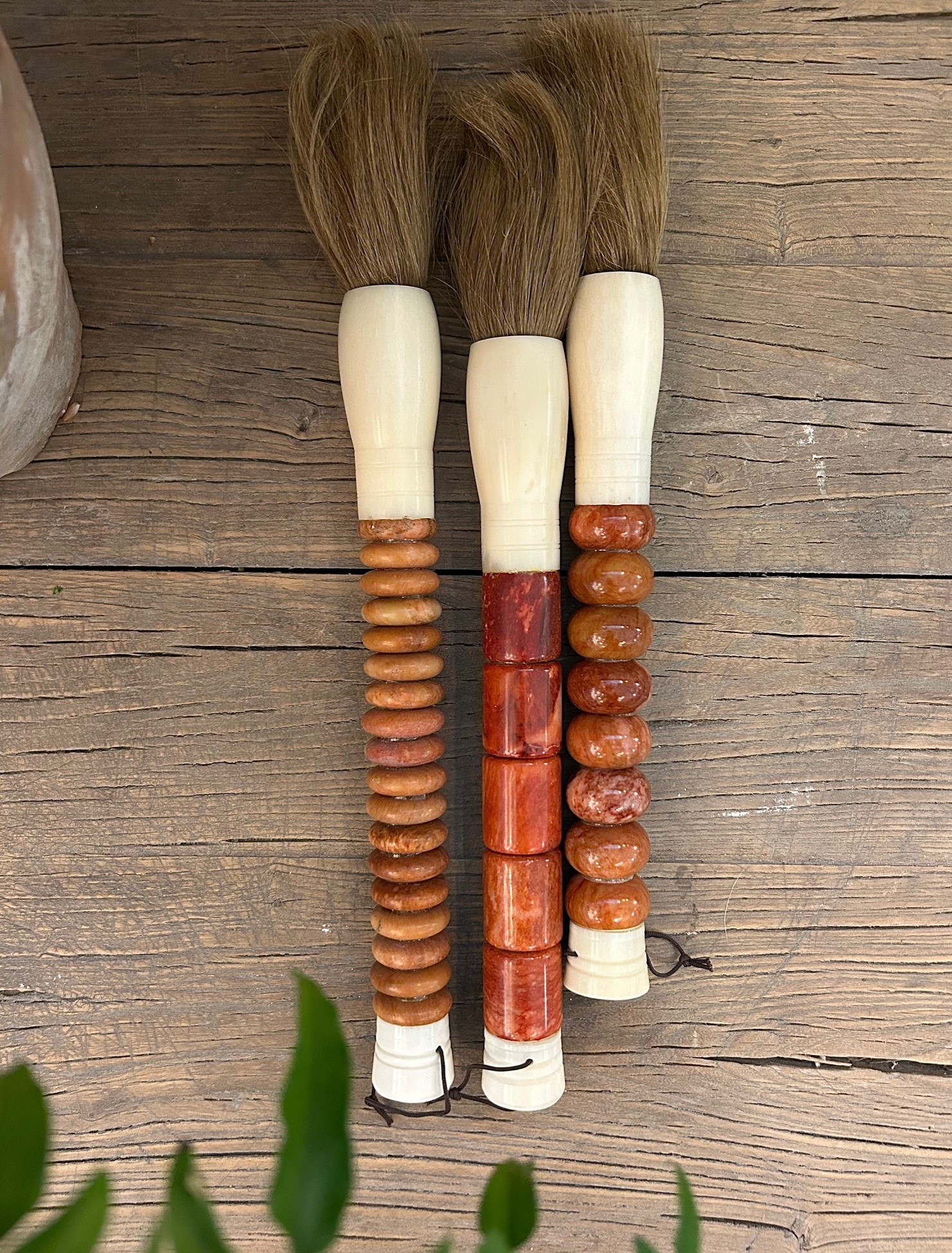 Varje borste är handgjord med noggrant utvalda naturliga material, skaft av natursten och en mjuk borst av hästman.