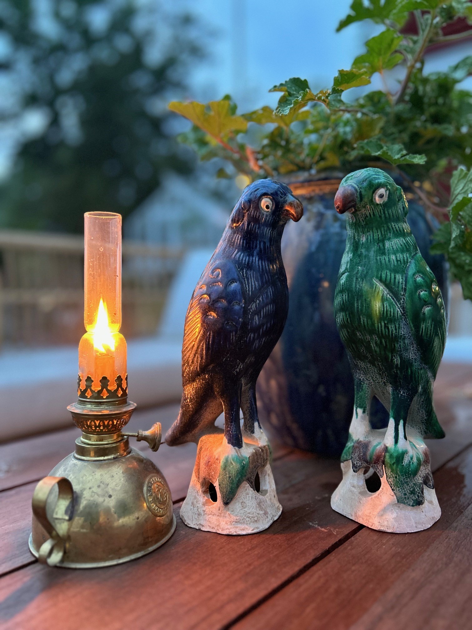 Dekorativ fågel i krackelerad glaserad keramik som finns i två olika färger, grön och blå. Varje fågel är unik då det är ett hantverk (det finns ett mindre hål i bakhuvudet på varje fågel, det ska vara så:))