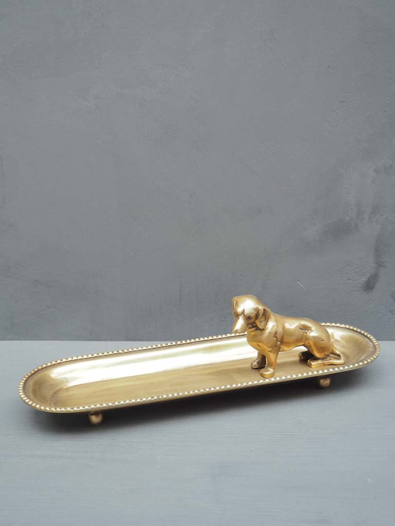 Så söt liten mässing bricka med en sittande tax i hörnet. Perfekt bricka att lägga smycken, nycklar eller ställa ett par mindre ljuslyktor på. Eller varför inte serverar små praliner på:)