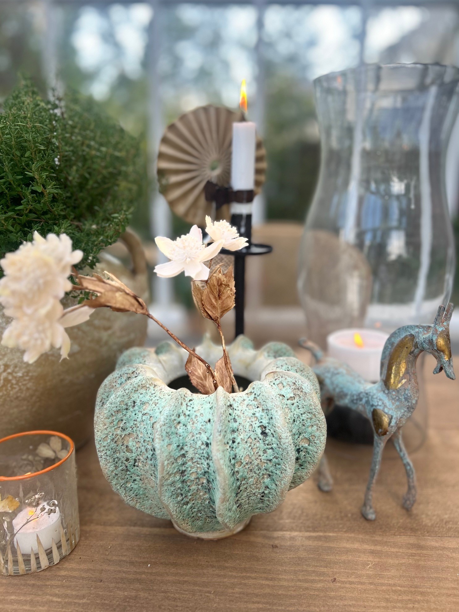 Moss medium är en handgjord dekorativ inredningsdetalj som inte behöver blommor i sig för att vara fin. Om du mot förmodan vill använda den som vas så rekommenderas att använda ett glas eller en avklippt liten pet-flaska med vatten för att skydda den fina Moss vasen. Eller använd torkade blommor, en konstgjord kvist som på bilden (exempelvis konstgjord Stjärnflocka som finns under kategorin detaljer – dekoration).Varje vas är unik och den du beställer kan skilja sig lite från fotot.