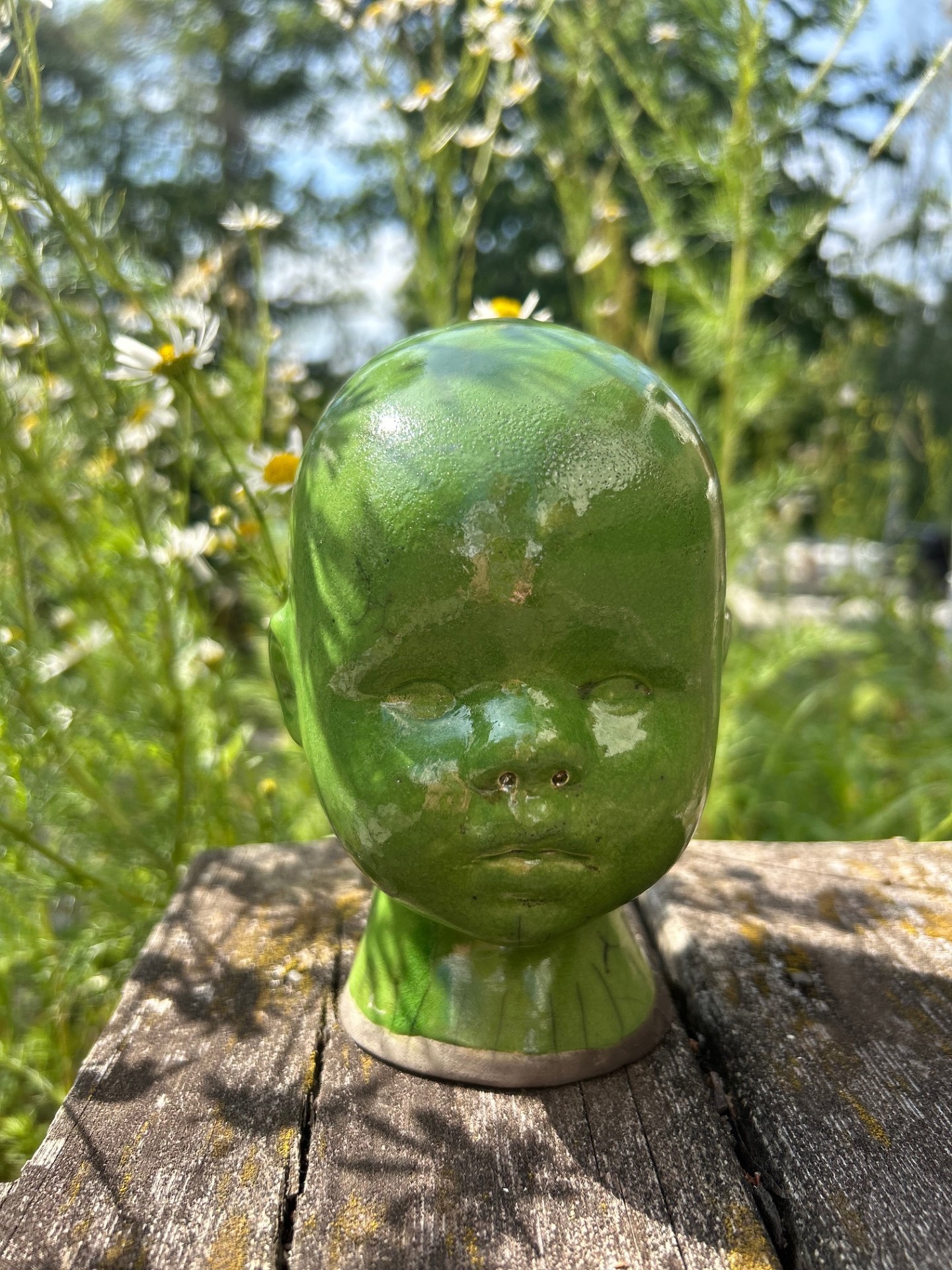 Varje Rakuföremål är unikt. Gjuten i en form och omsorgsfullt efterarbetad för hand. Rakubränningen gör att krackeleringar och färgskiftningar framkommer på naturens villkor. Inget huvud är det andra likt, det finns en speciell Rakudoll för dig!