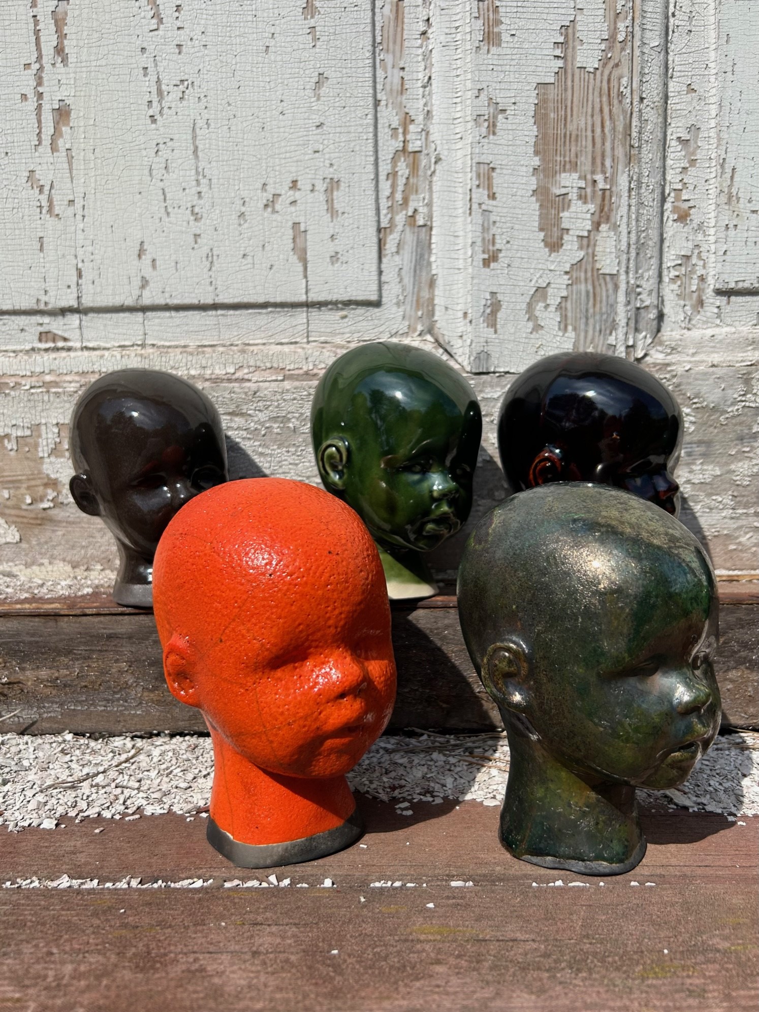 Varje Rakuföremål är unikt. Gjuten i en form och omsorgsfullt efterarbetad för hand. Rakubränningen gör att krackeleringar och färgskiftningar framkommer på naturens villkor. Inget huvud är det andra likt, det finns en speciell Rakudoll för dig!