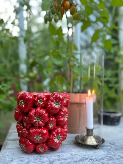 Mått: höjd 38cm, diameter 23cm (botten 16cm)