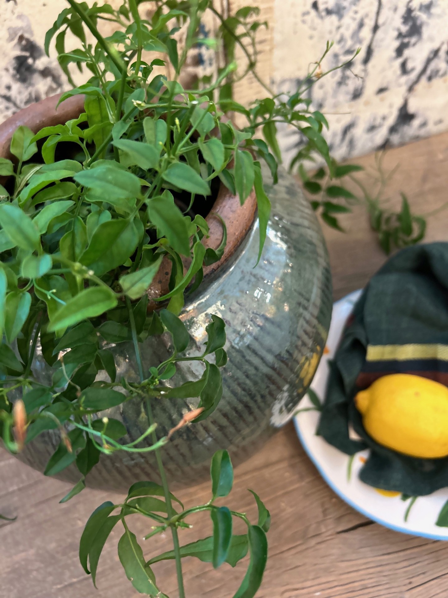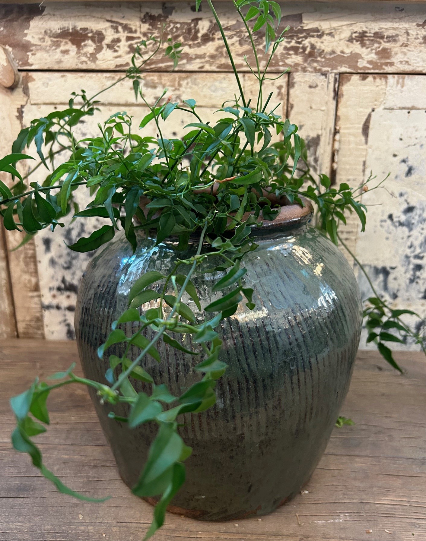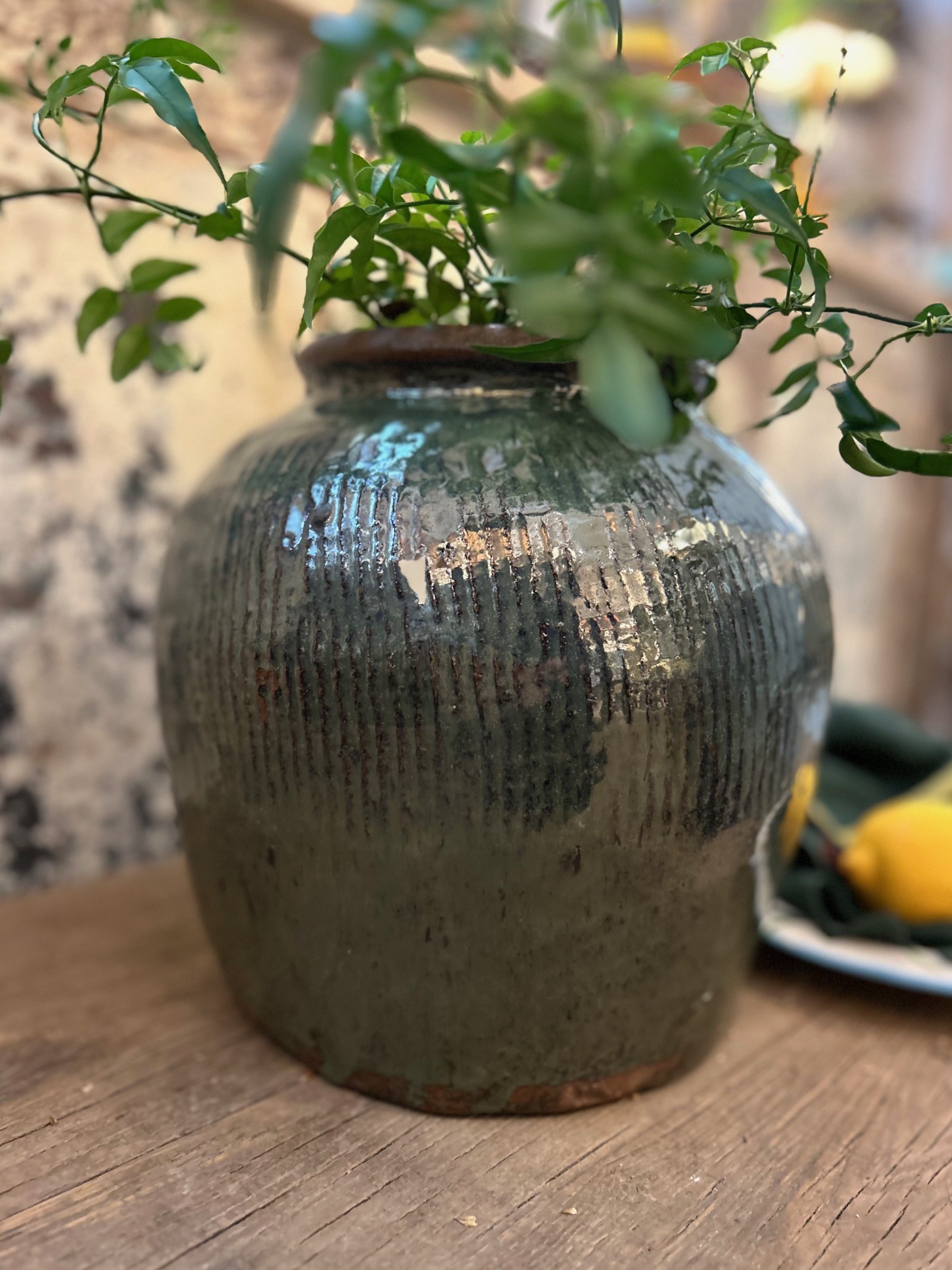 Vacker mörkgrön urna, handgjord i keramik där varje exemplar skiljer sig åt. Vi rekommenderar att använda en behållare som skydd om plantering eller riktiga växter ska användas då botten på urnan inte är glaserad och kan släppa igenom fukt.