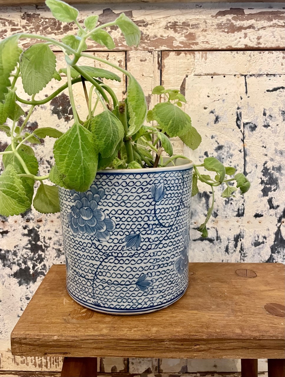 Handgjord blå kruka med ett vackert sobert mönster.