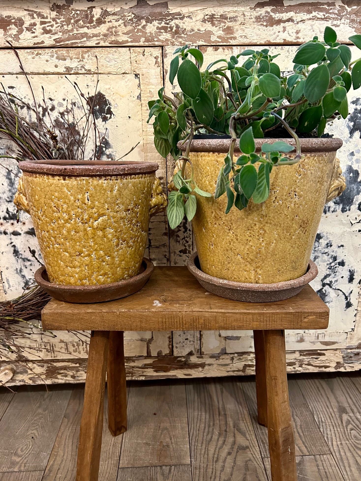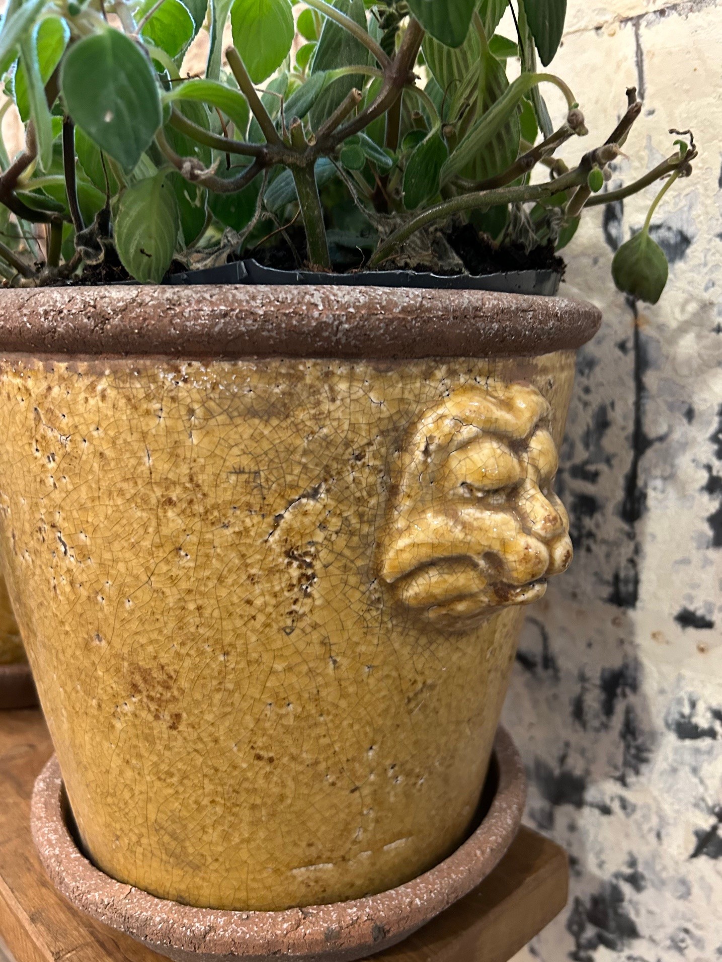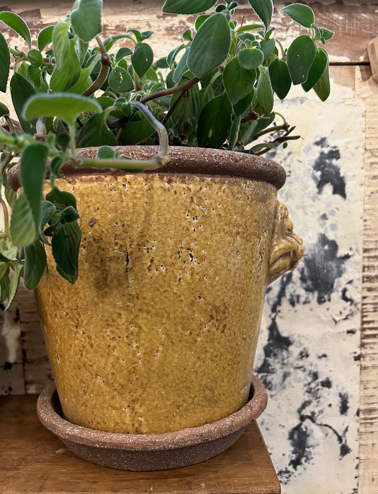 Rustik krackelerad kruka i klassisk design, krukan kommer med fat.