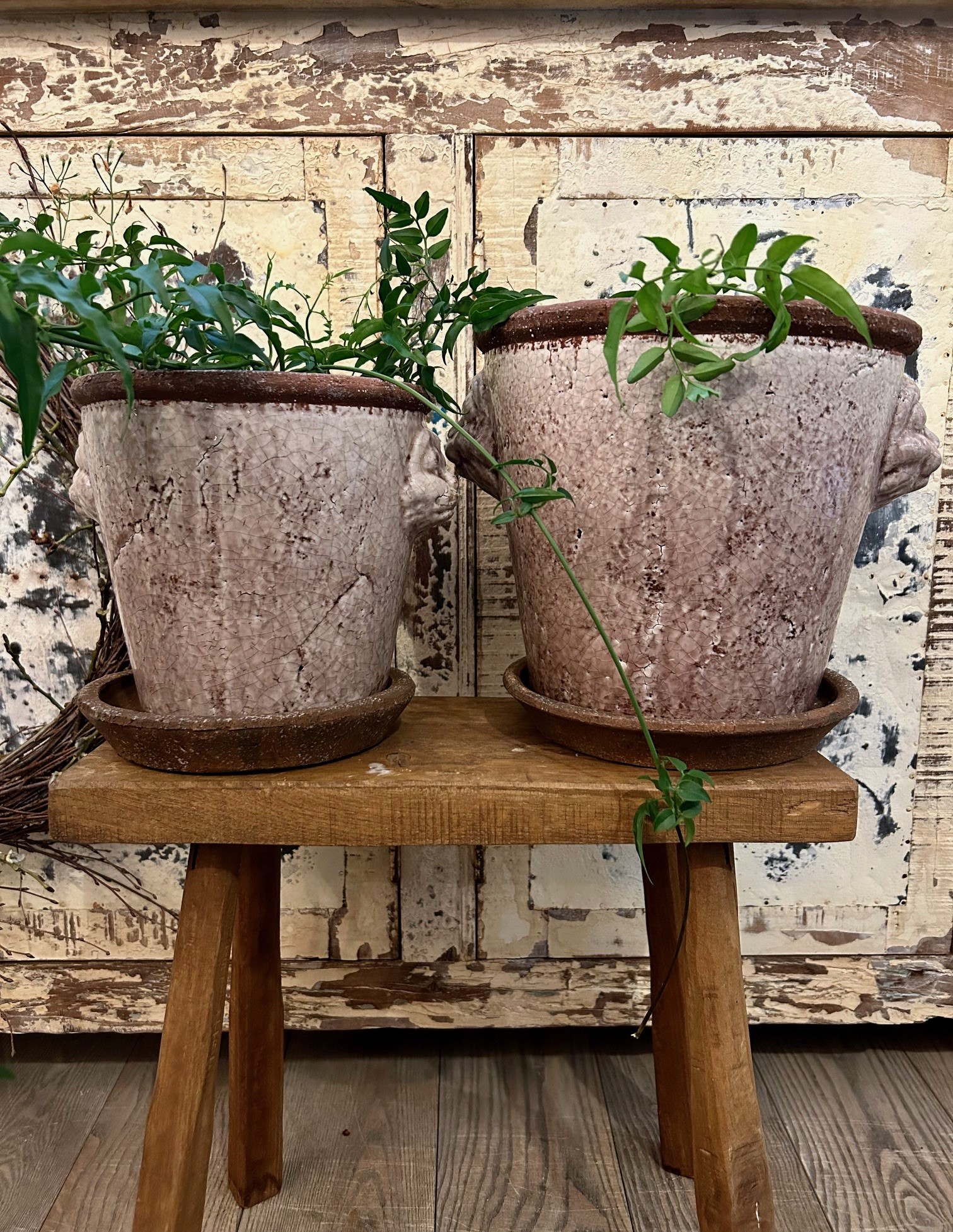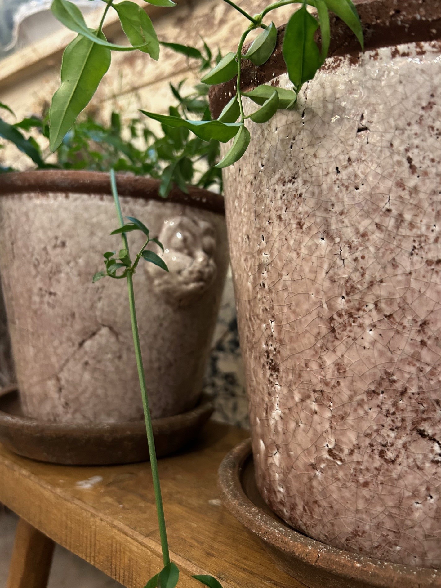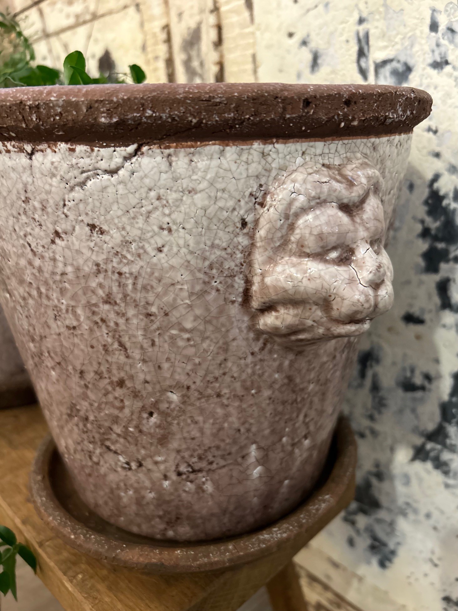Rustik krackelerad kruka i klassisk design, krukan kommer med fat.