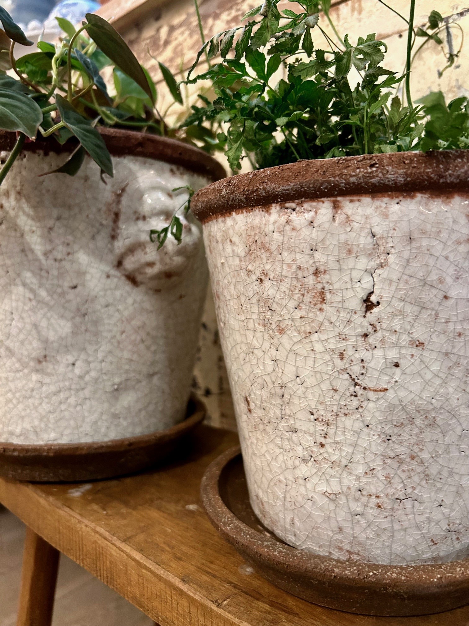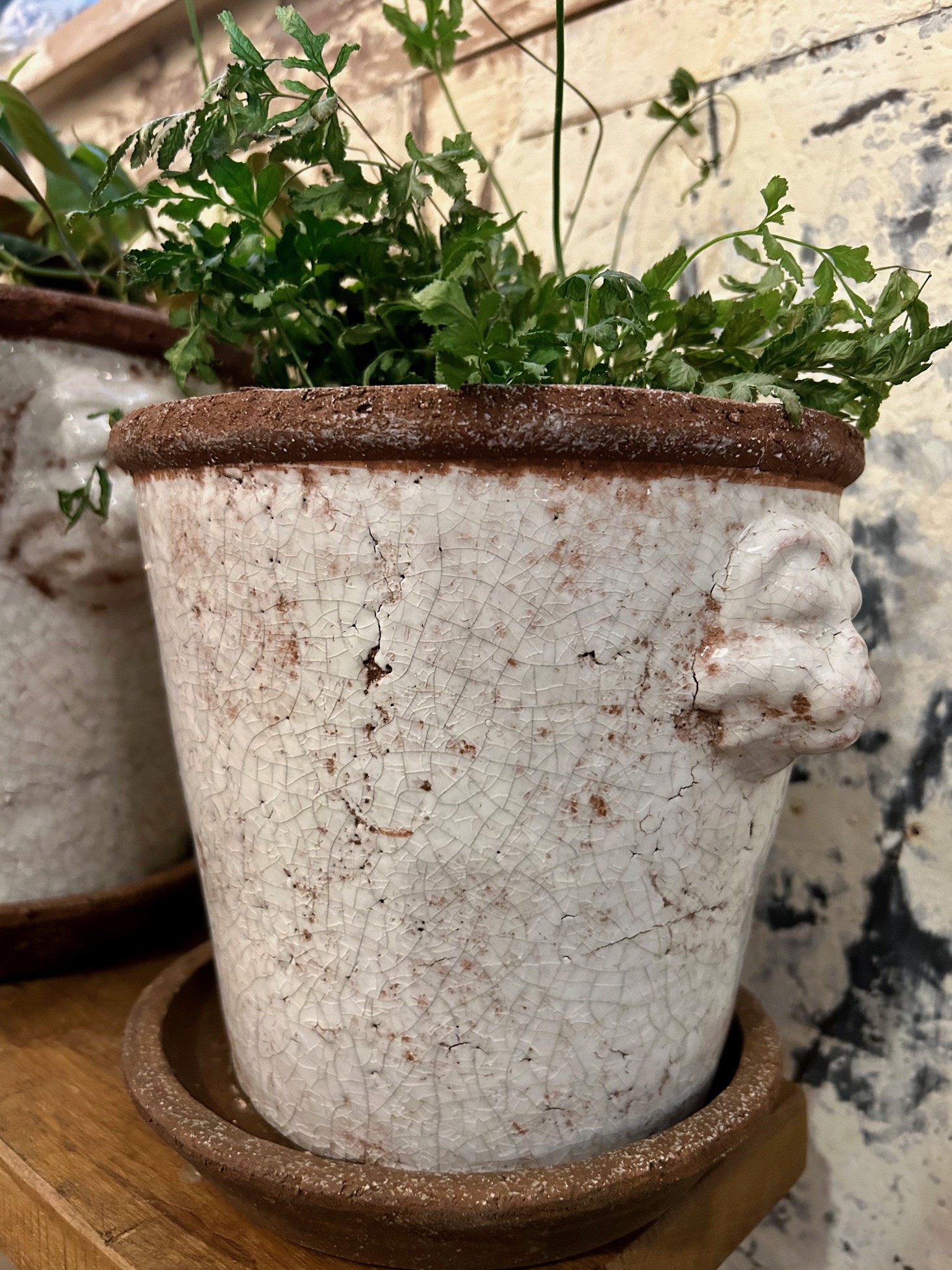Rustik krackelerad kruka i klassisk design, krukan kommer med fat.