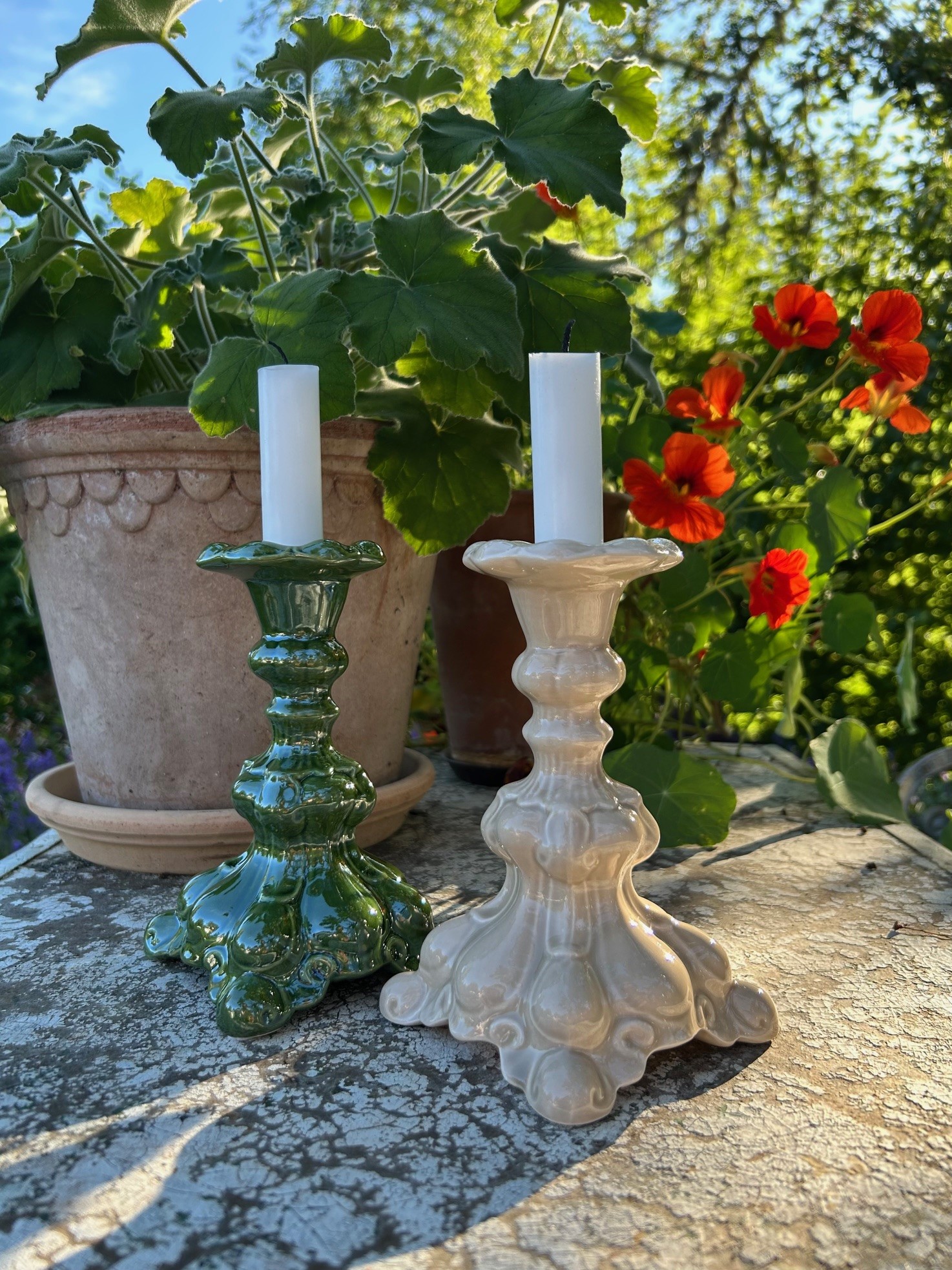 Klassisk ljusstake i ny tappning av Mikaela Willers. Barock har varit modern i flera perioder allt sedan slutet av 1600-talet. Barock är gjuten och glaserad för hand i många färger. Cirka 16cm hög.