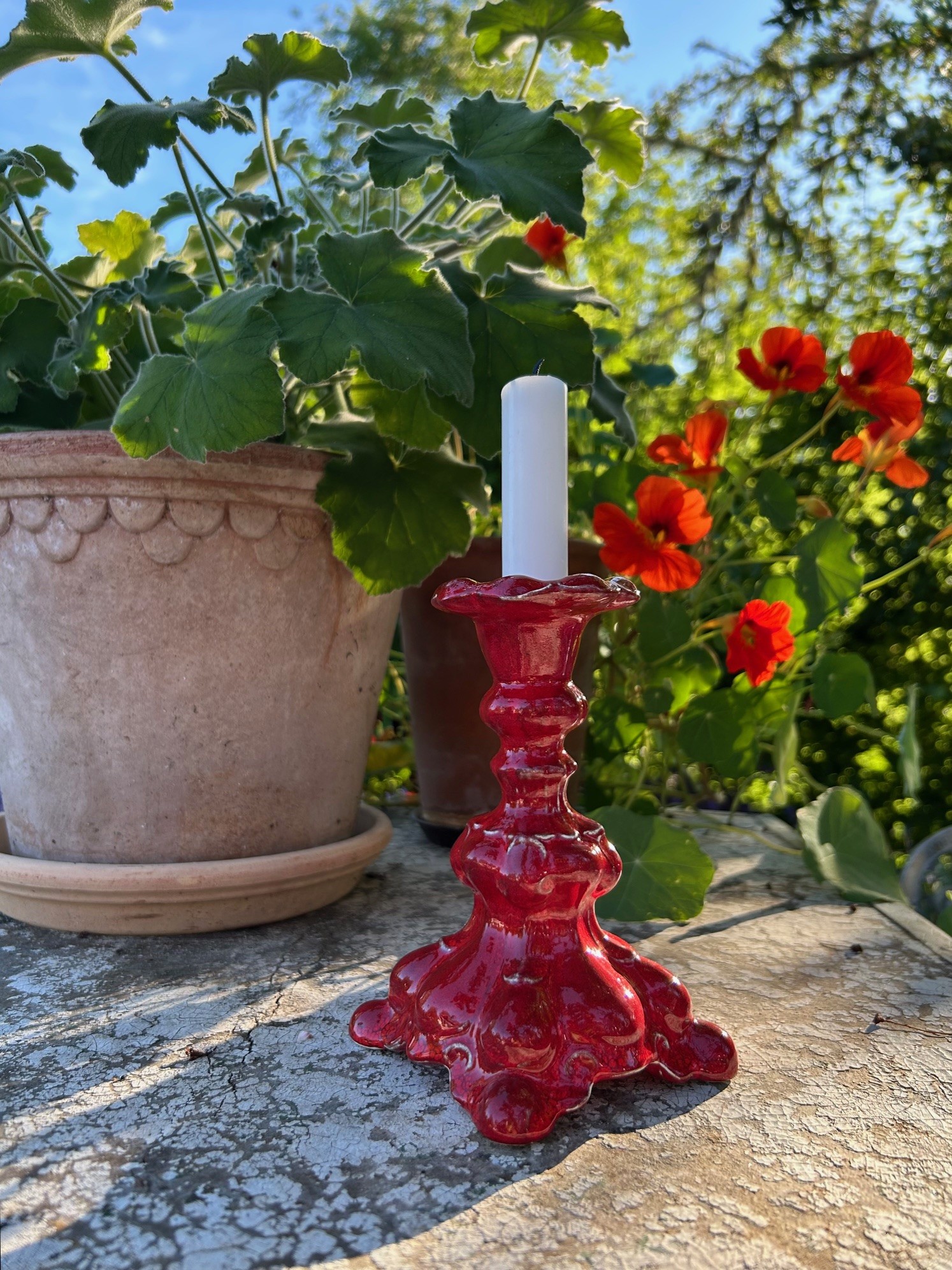 Klassisk ljusstake i ny tappning. Barock har varit modern i flera perioder allt sedan slutet av 1600-talet. Barock är gjuten och glaserad för hand i många färger. Cirka 16cm hög.