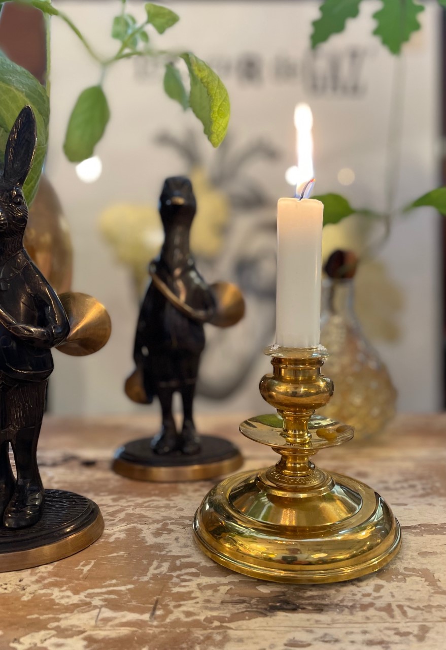 En klassisk mässingsljusstake efter en senbarock modell från tidigt 1700-tal.