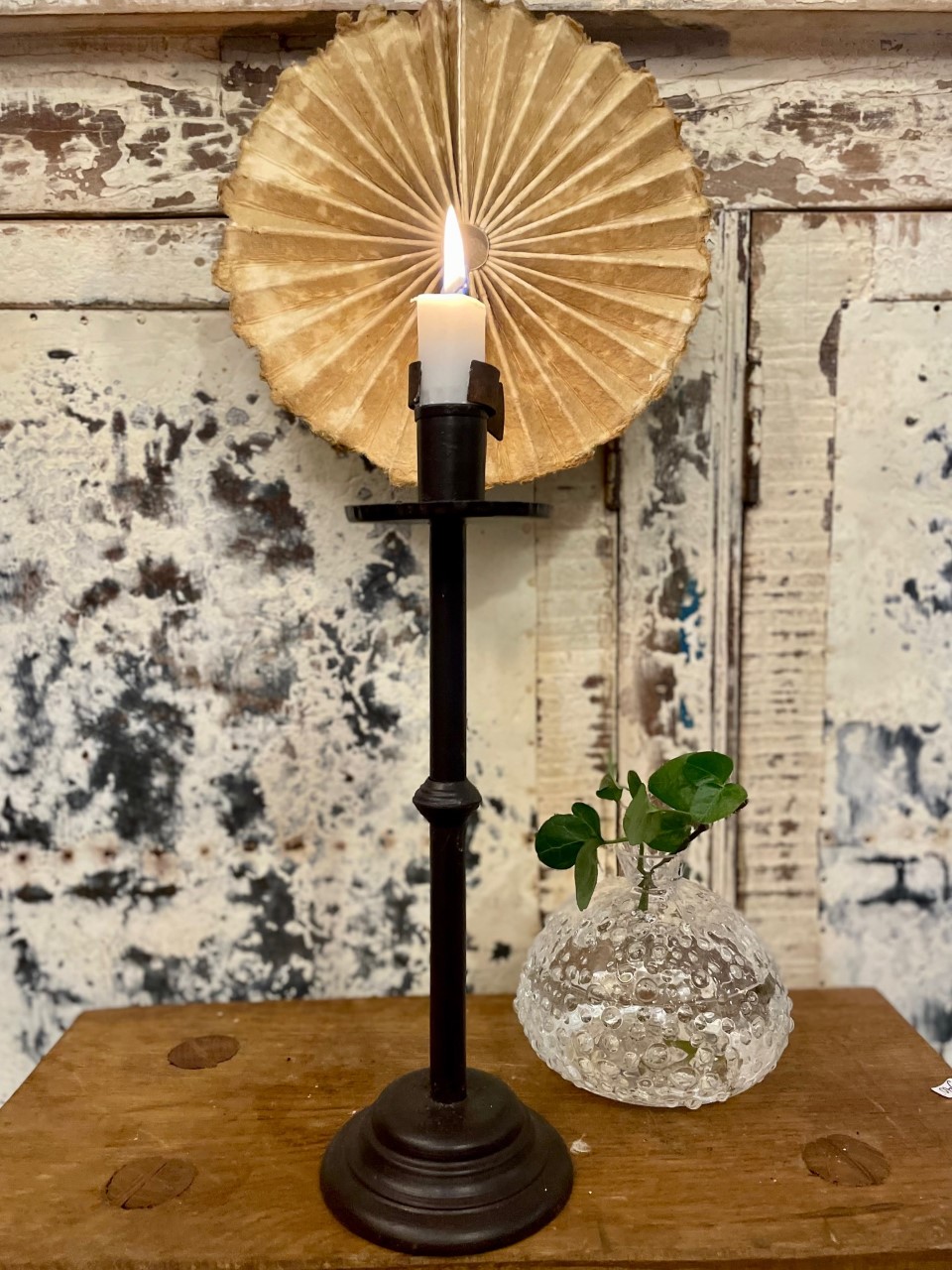 Flabellum är en fantastisk detalj och dekoration till din ljusstake, som en solfjäder i kraftigt handvikt papper som kläms ihop med en klämma som sen kläms fast runt ljuset/ljusstaken och blir en effektfull detalt och skapar en fin skugga mot väggen. Klämman är så pass lång att bra avstånd hålls till pappret men självklart ska aldrig levande ljus lämnas utan uppsikt.
