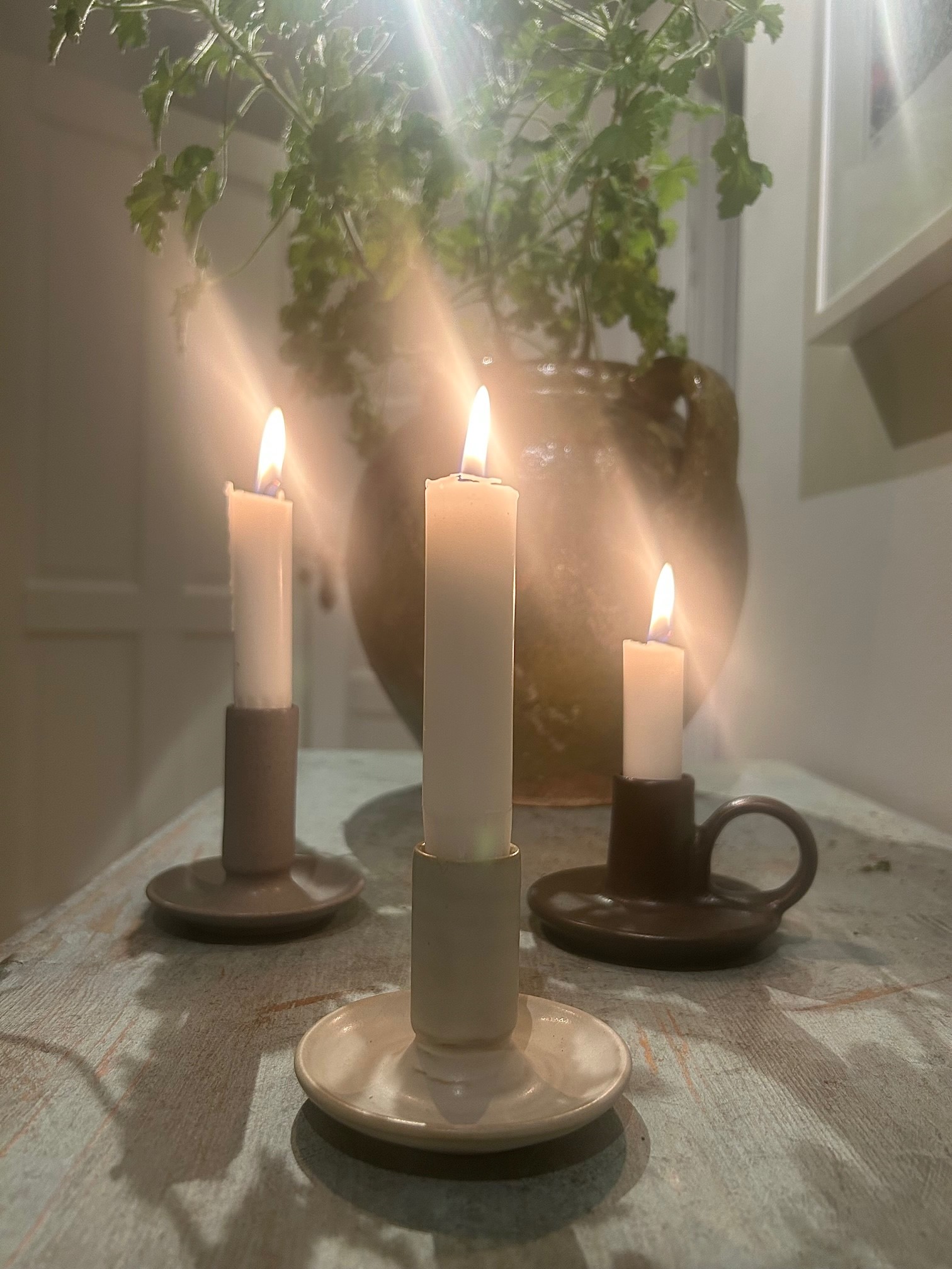 En liten handgjord ljusstake med en fin matt yta.