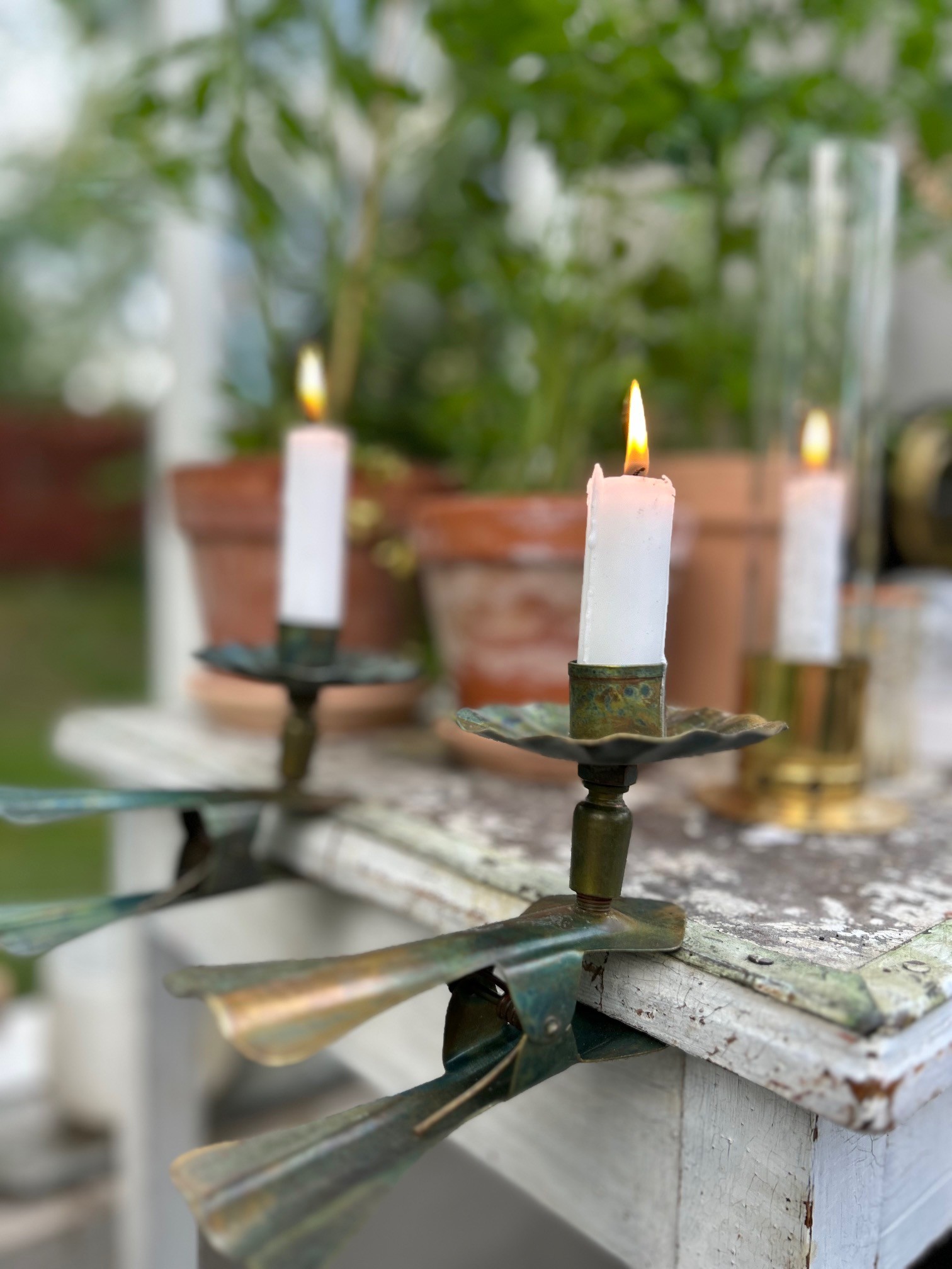 Klämma ljushållare för klassiska kronljus eller som på bild bivaxljus kan du klämma fast på en hyllkant, bordsskiva etc. Klämman är kraftig och stabil, tillverkad i plåt, varje exemplar är unik.