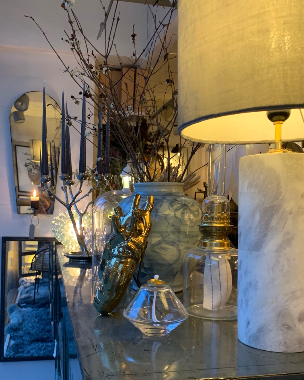 Vacker och dekorativ lampett med en ljushållare för något tjockare ljus, 4cm.