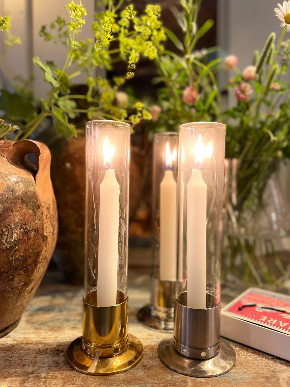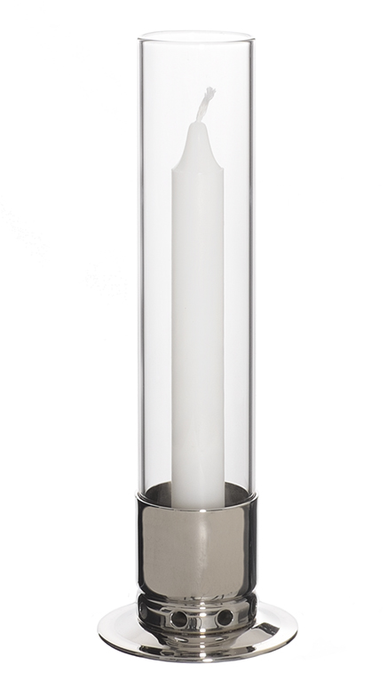 Ljusstake kattvik förnicklad mässing. Med vackert stormglas som gör att ljuset inte blåser ut och minimerar brandrisken. Stabil och smidig fot håller ljusstaken stående även i stark vind och tar liten plats på bordet. Kan användas såväl inom – som utomhus i olika miljöer – året runt.