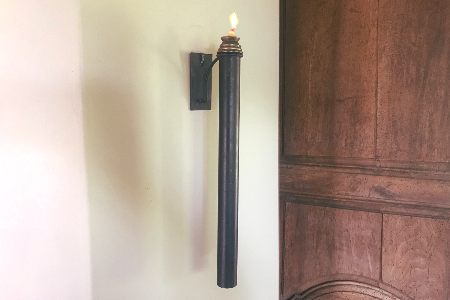 Klassiskt eller modernt, en ljuslåga som alltid brinner på samma nivå, i slutet av ett tunt matt svart rör, perfekt för en diskret väggljuspunkt. Röret skyddar en fjäderljusskjutare från tidigare tider och omredigerad för standard 21 mm ljus. För passionerade ljus atmosfär.