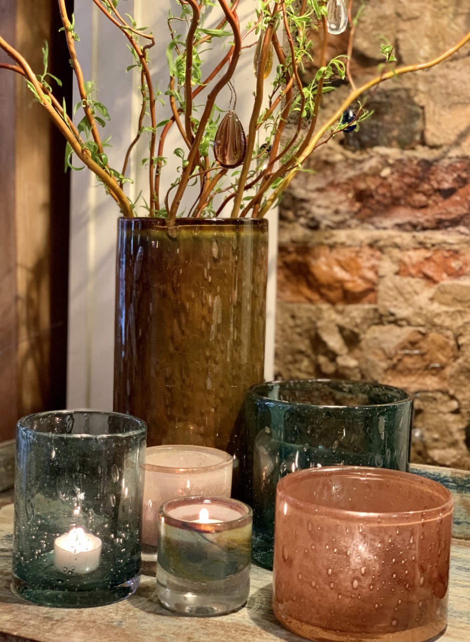 Vacker ljuslykta i munblåst tjockt genomfärgat glas. Eftersom glaslyktan är ett unikt hantverk blir ingen lik den andra. Handgjord glaslykta av returglas som skiftar i struktur och glaset du beställer kan därför avvika något från bilden. Lyktorna finns i flera olika färger och storlekar, superfint att blanda dem tillsammans.