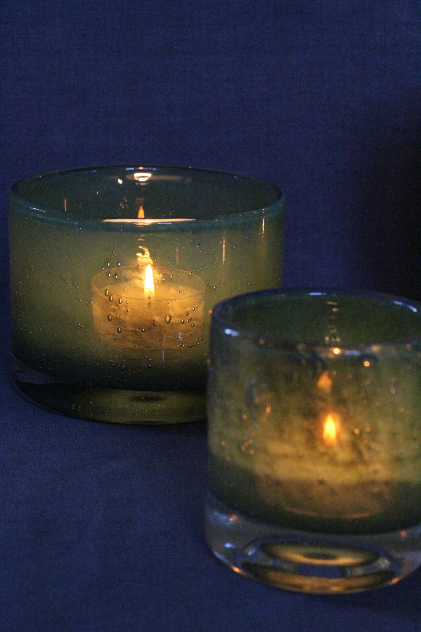 Vacker ljuslykta i munblåst tjockt genomfärgat glas. Eftersom glaslyktan är ett unikt hantverk blir ingen lik den andra. Handgjord glaslykta av returglas som skiftar i struktur och glaset du beställer kan därför avvika något från bilden. Lyktorna finns i flera olika färger och storlekar, superfint att blanda dem tillsammans.