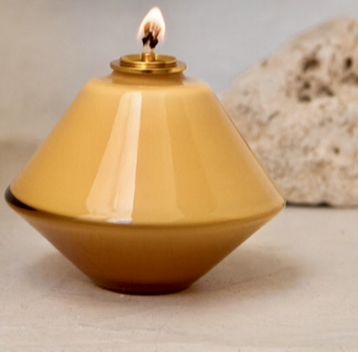 Aki oljelampa är en moderniseringen av en traditionell gammal lucerna. Oljelampan är helt handblåst i ogenomskinligt glas – bildade av lager av opal och transparent glas.
