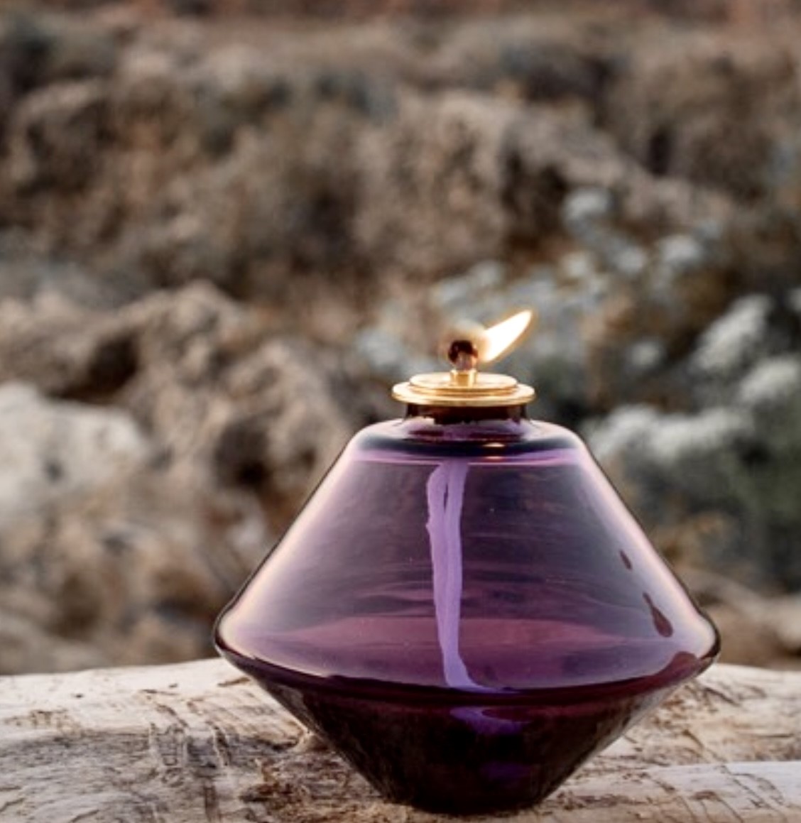 Aki oljelampa är en moderniseringen av en traditionell gammal lucerna. Oljelampa helt handblåst och klar i rena ljusa färger.