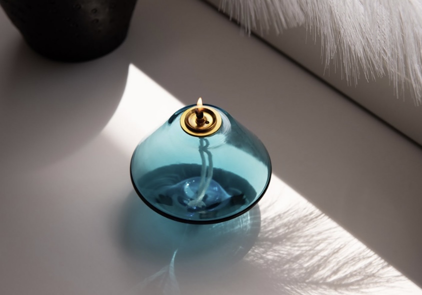 Aki oljelampa är en moderniseringen av en traditionell gammal lucerna. Oljelampa helt handblåst och klar i rena ljusa färger.