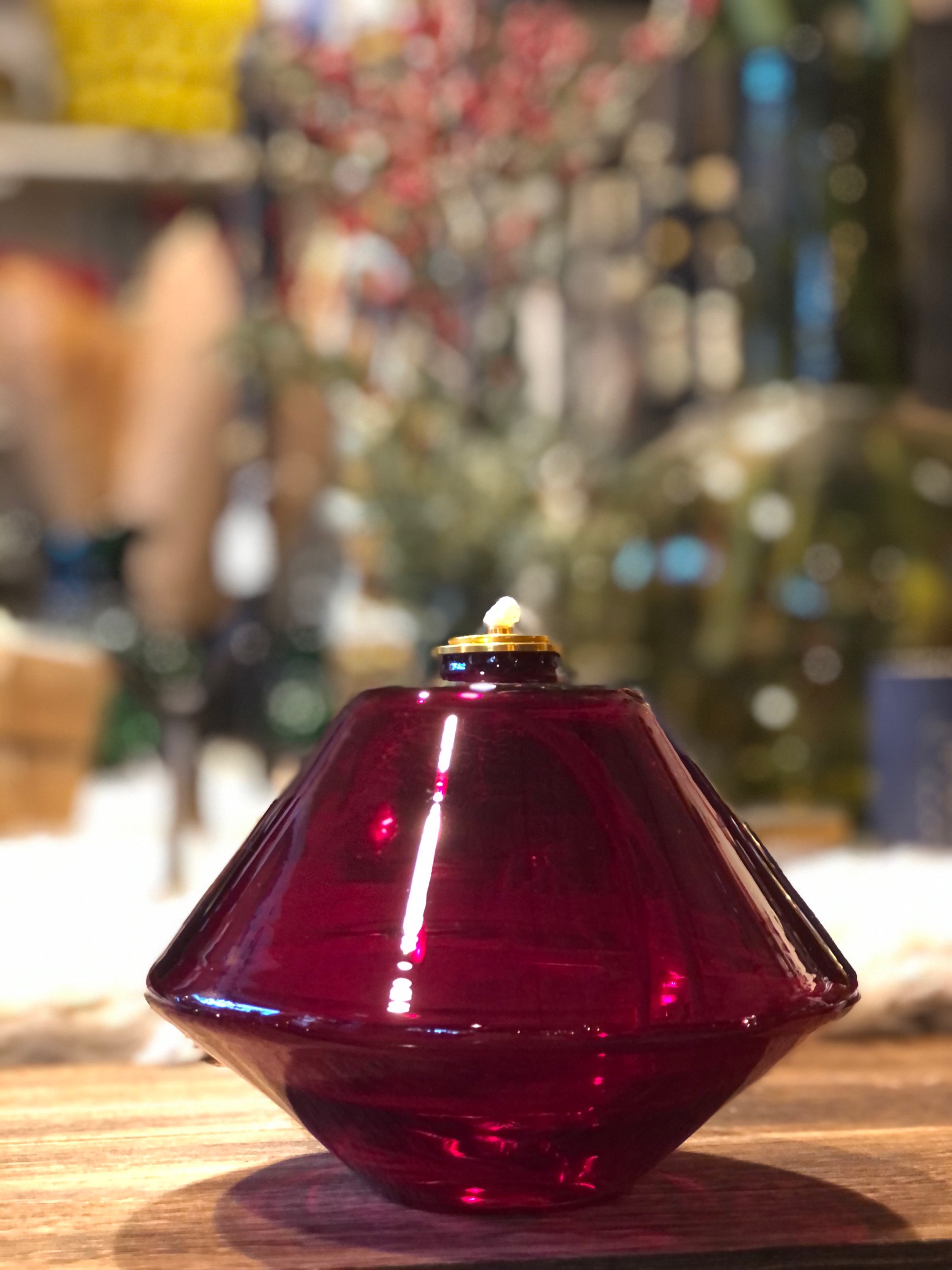 Aki oljelampa är en moderniseringen av en traditionell gammal lucerna. Liten oljelampa helt handblåst och klar i rena ljusa färger.