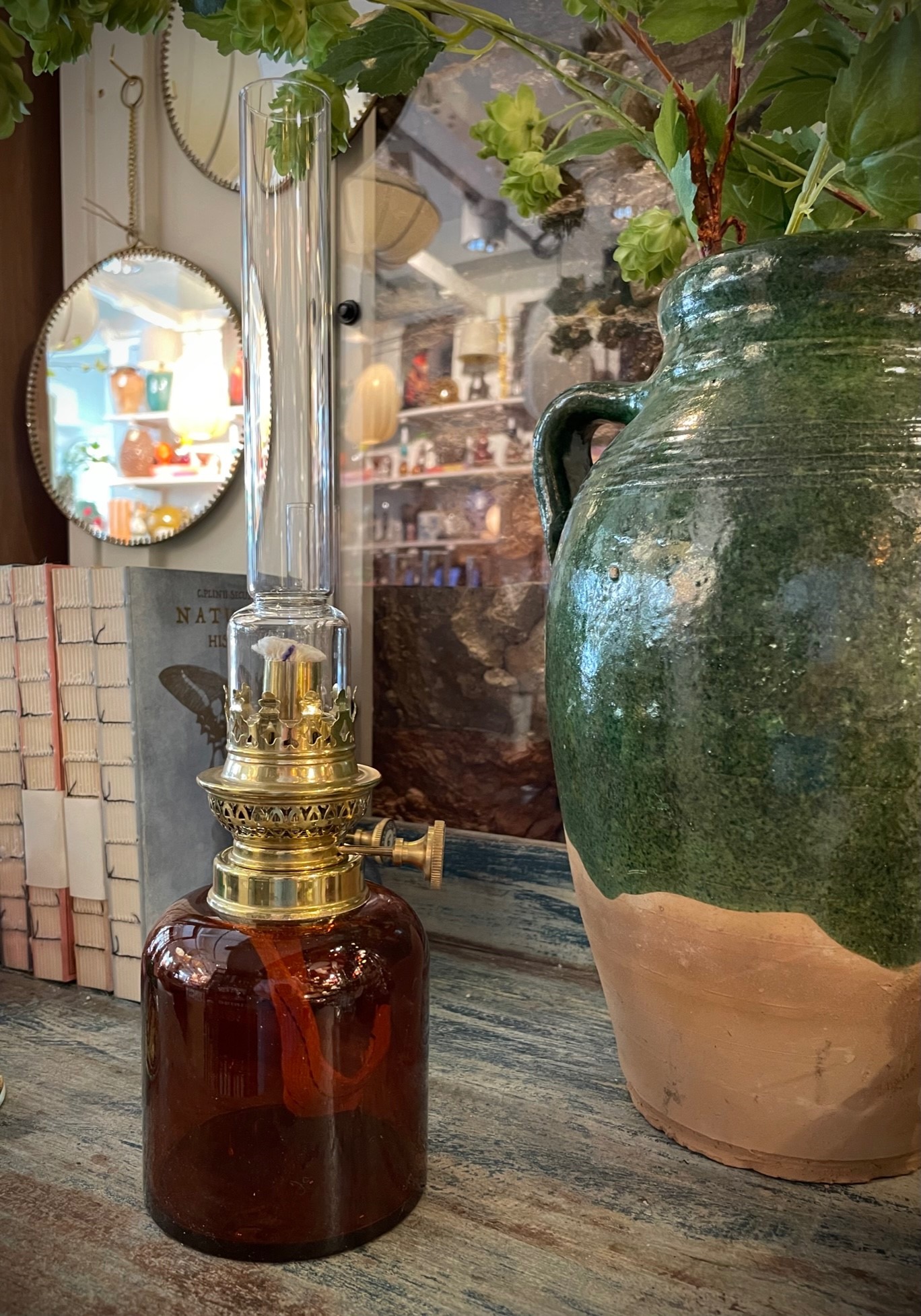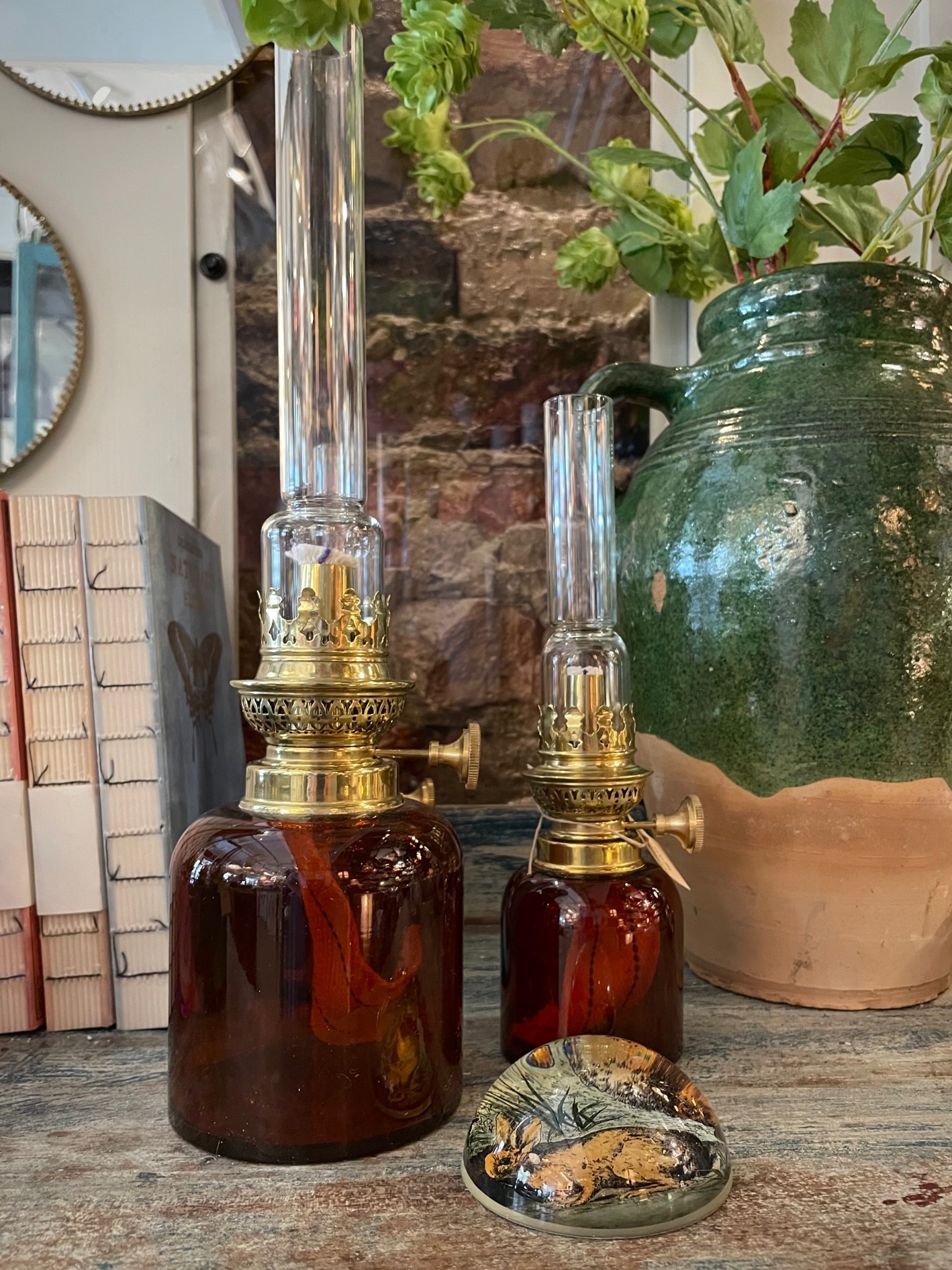Material…..Buteljbrunfärgat klarglas och mässing