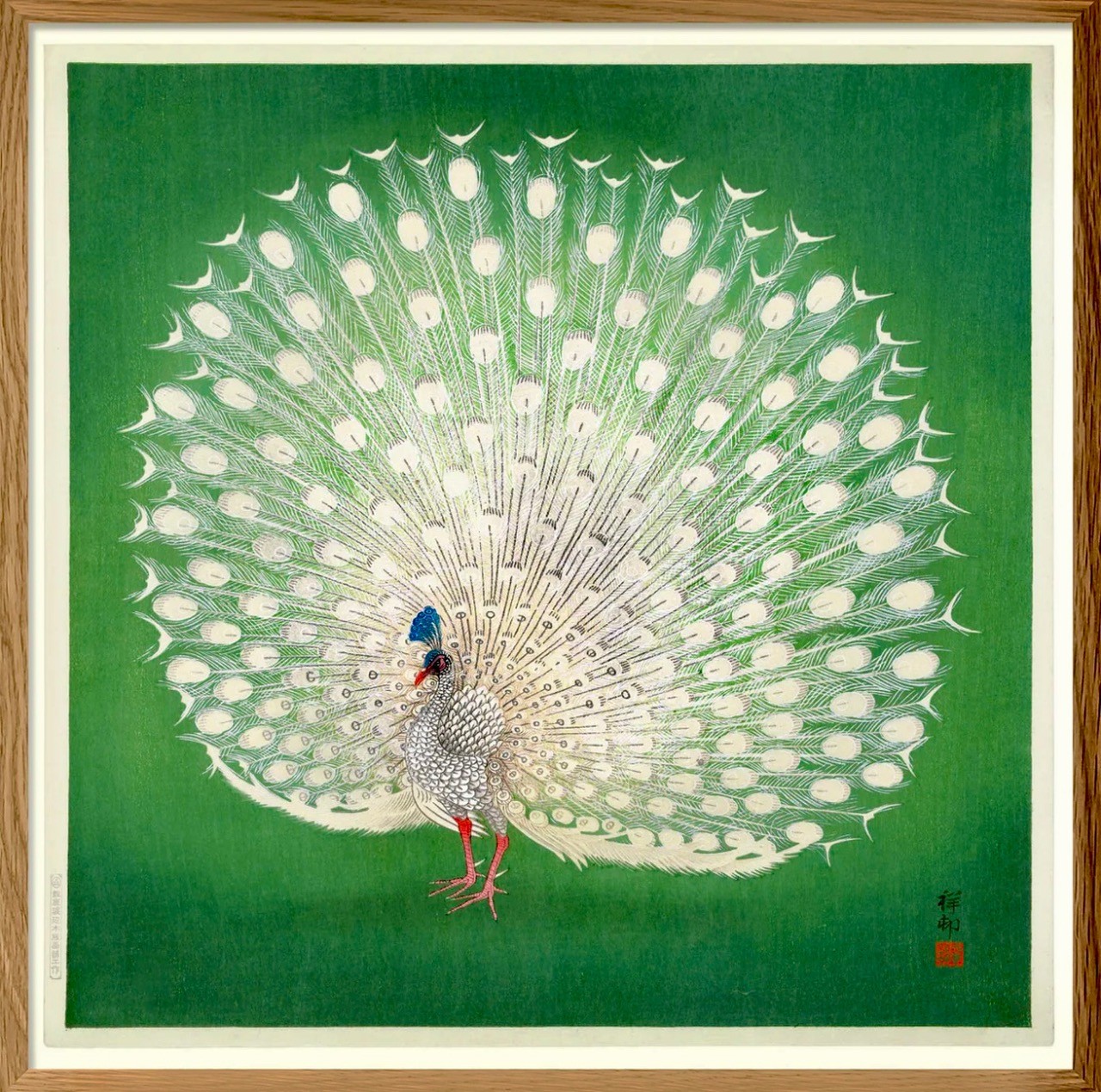 Härlig bild i kvadratiskt format. Påfågeln Tryckt med japanskt arkivbläck på ett matt Hahnemühle-papper utanför Köpenhamn, Danmark.