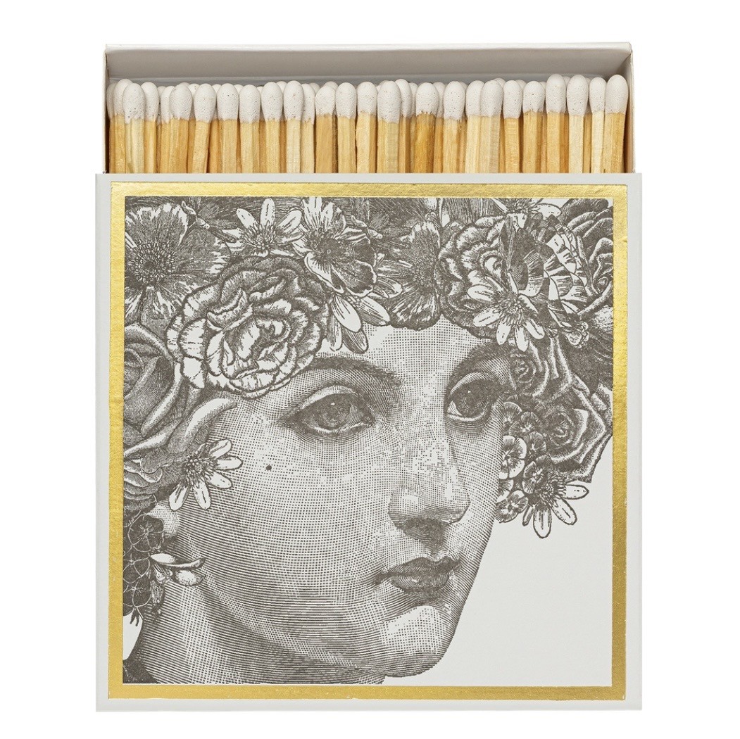 Dekorativ tändsticksask som är fylld med 125 tändstickor redo att väcka lite glädje. Utformade för att ge karaktär till soffbord, spiselkransar och presentlådor, är varje ask en blandning av funktion och stil.
