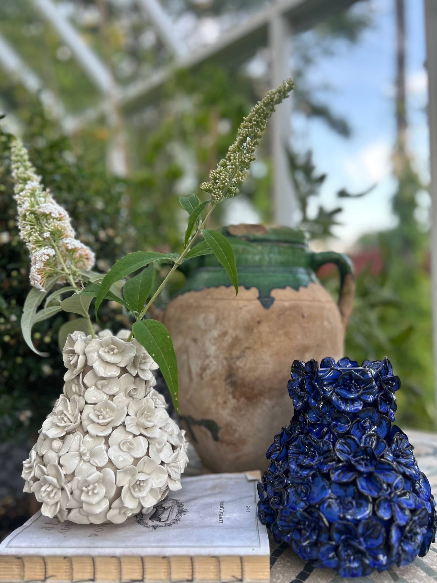 Blomster är en handgjord keramikvas inspirerad av naturens former och färger, varje vas är unik på grund av den handgjorda processen. Vasen är designad för att fungera som blomhållare och som ett dekorativt föremål i sig själv.