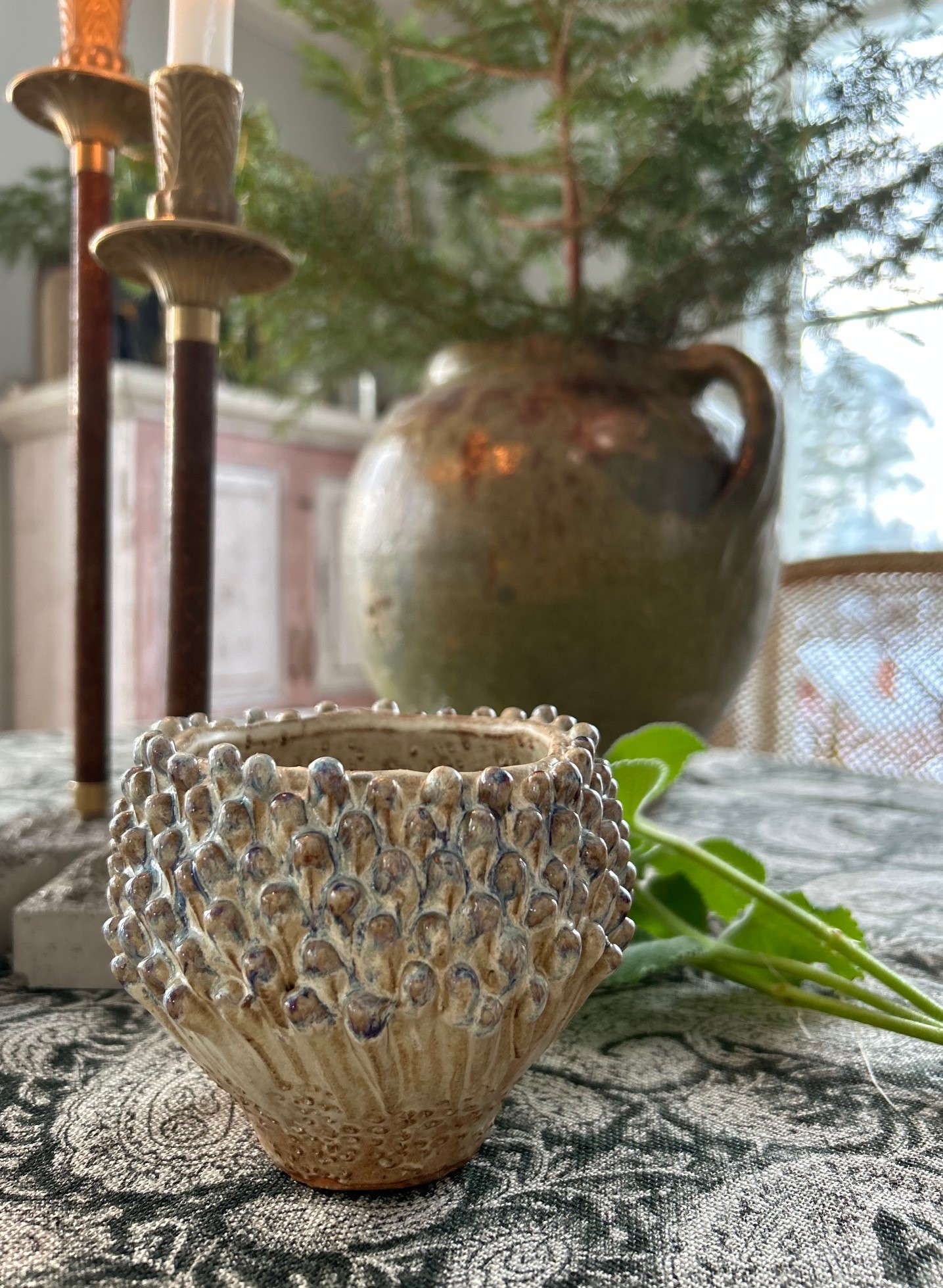 Handgjord liten keramikvas i organiskt uttryck, varje exemplar är unikt och kan därmed skilja sig lite i färg o form mot den som visas på bilden.