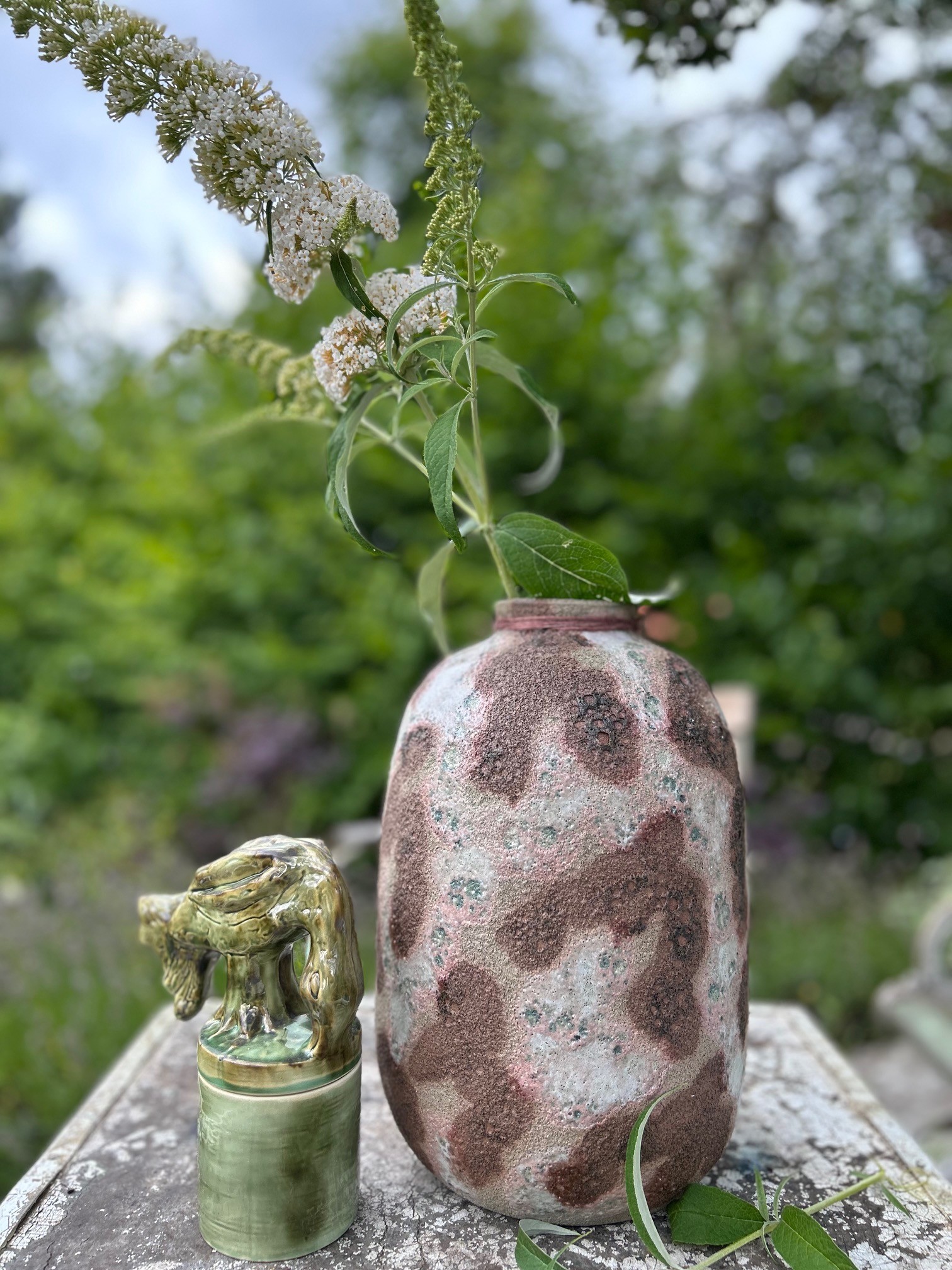 Vacker melerad rå keramikvas i jordiga toner, vasen är gjord för att använda torkade/konstgjorda kvistar, även vacker som den är utan något i. Varje vas är unik och skillnader kan förekomma mot den som visas på bild.