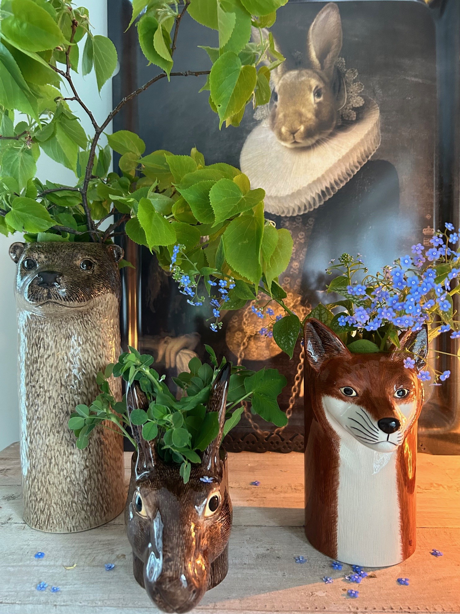 Handmålad vas i form av en räv som sätter karaktär och ett personligt uttryck i ditt hem. Kan även användas till att ställa i köksredskapen i köket.