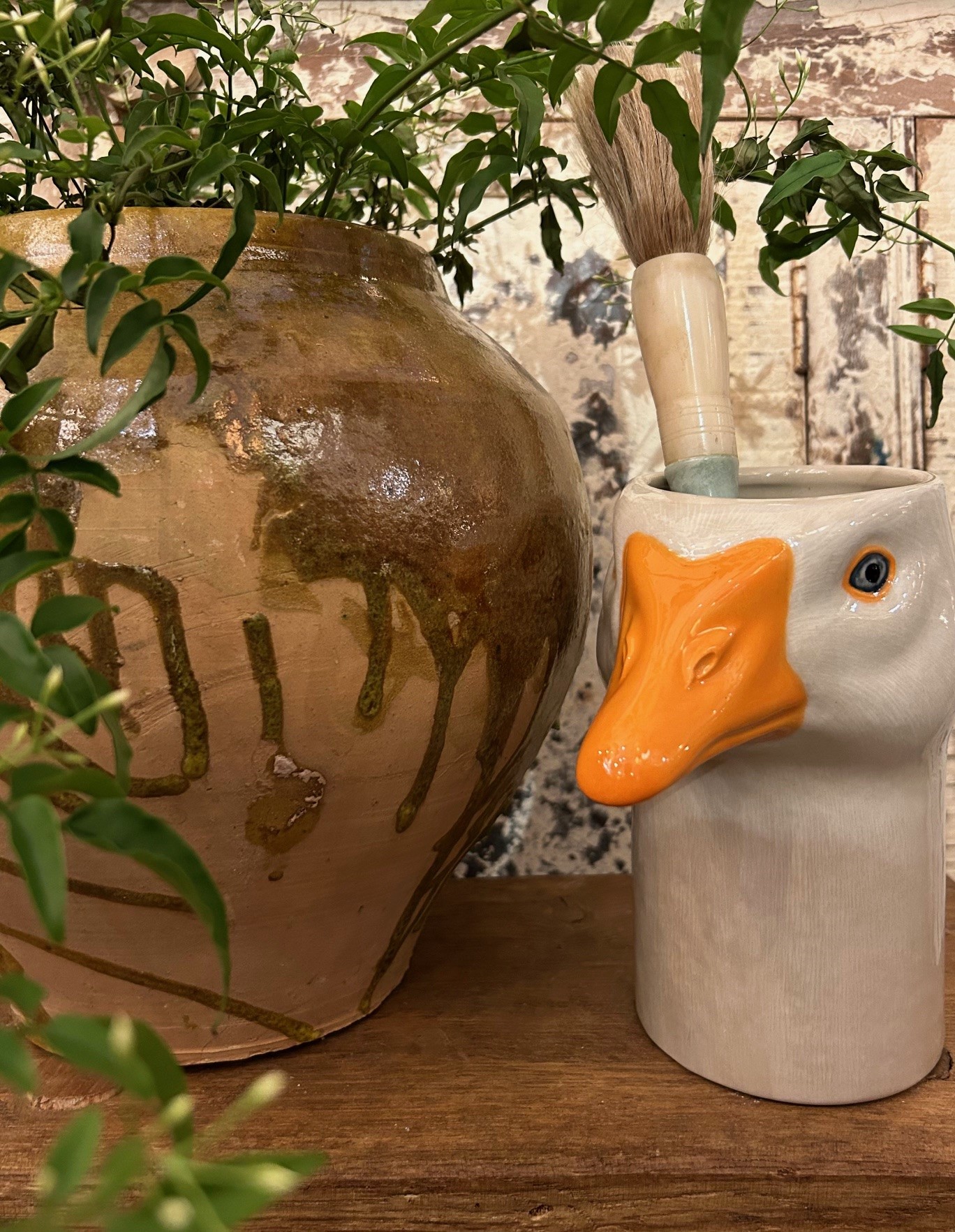 Charmig gås i handmålad porslin, även bra storlek till köksredskapen.